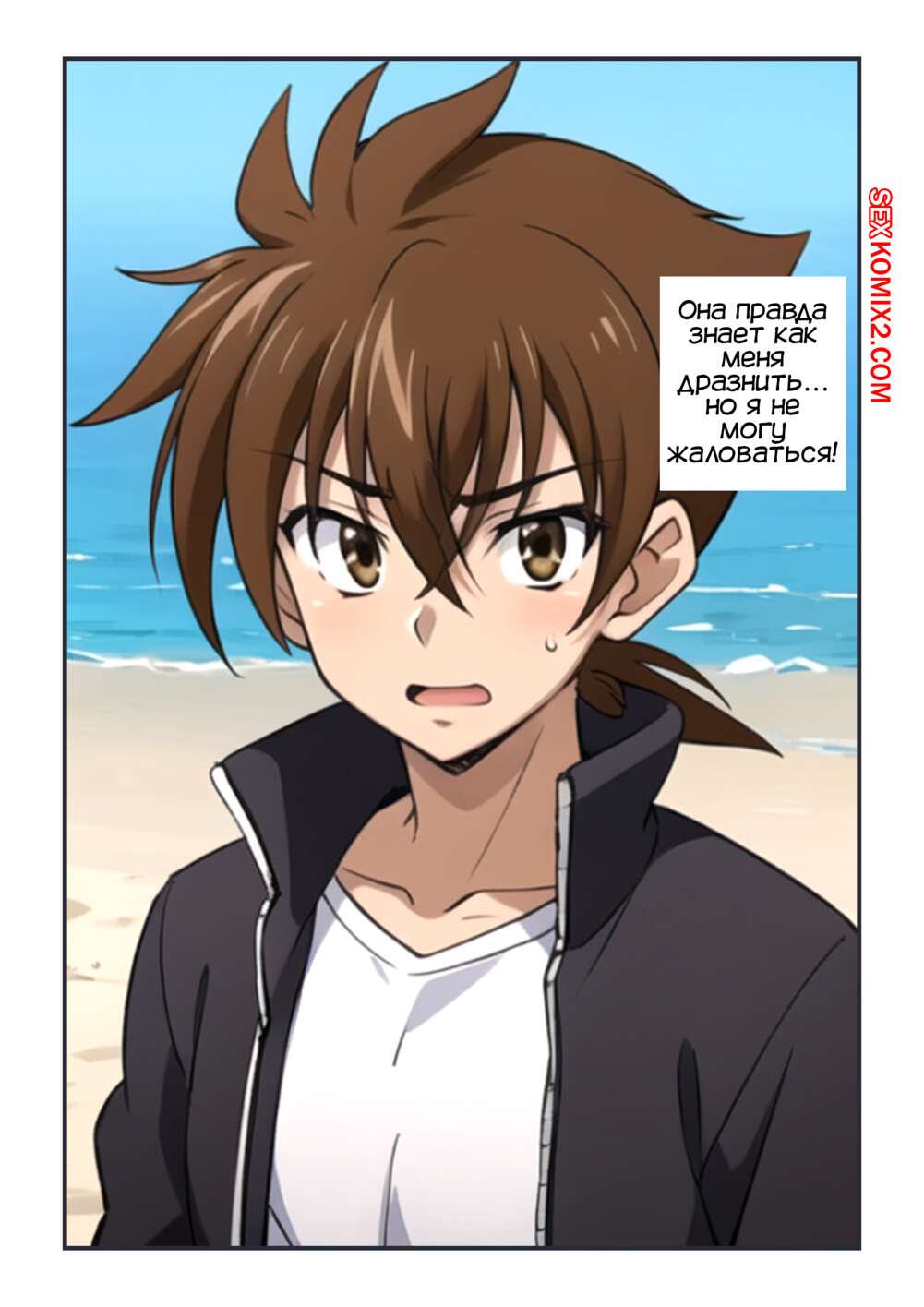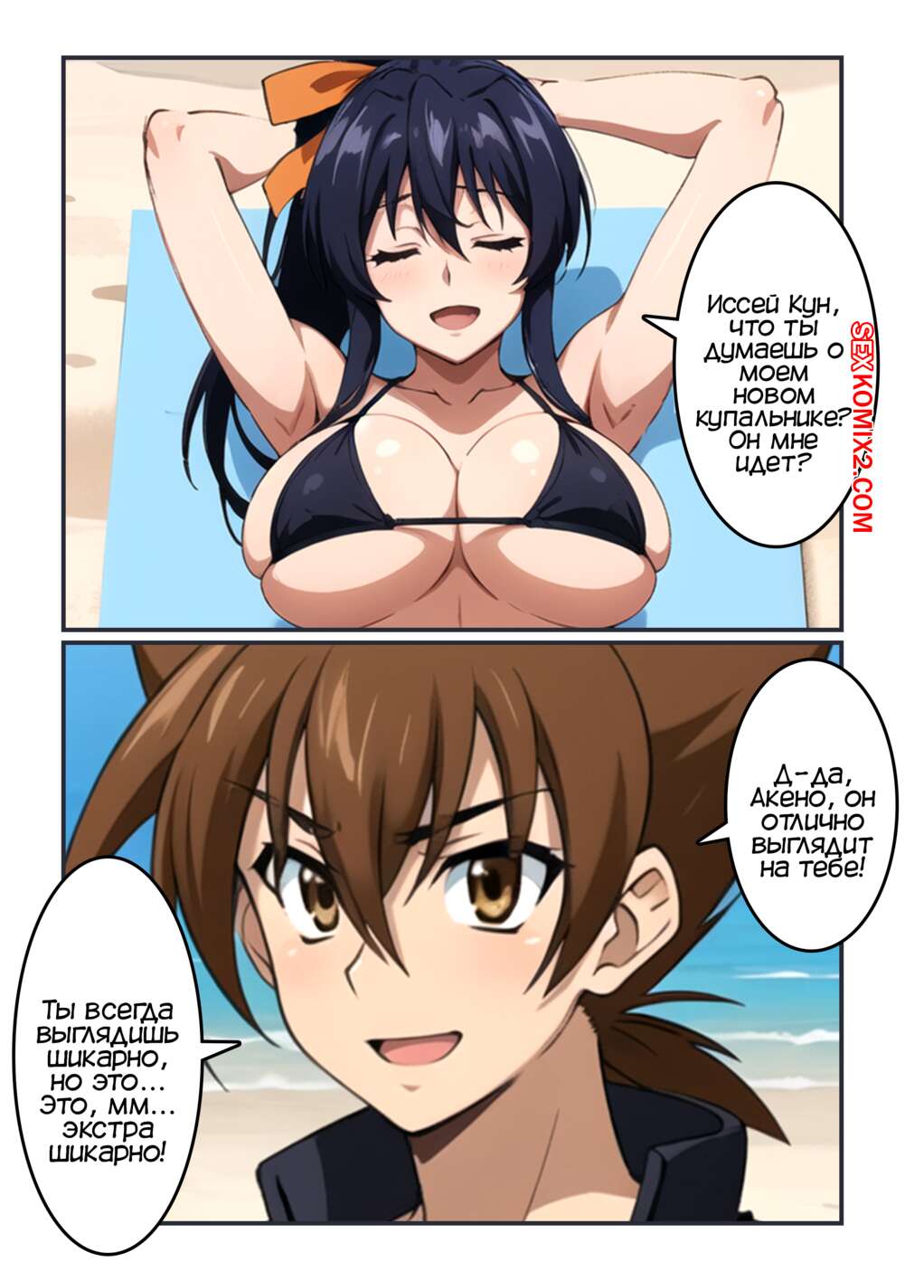 Порно комикс Пляжная Красота Акено. Akenos Beach Beauty. Kahoo Горячая брюнетка купила сексуальный купальник, желая порадовать своего дружка на пляже. Девушка возбудила парня шикарным телом, после чего достала его член и стала дрочить сиськами хуй паренька.