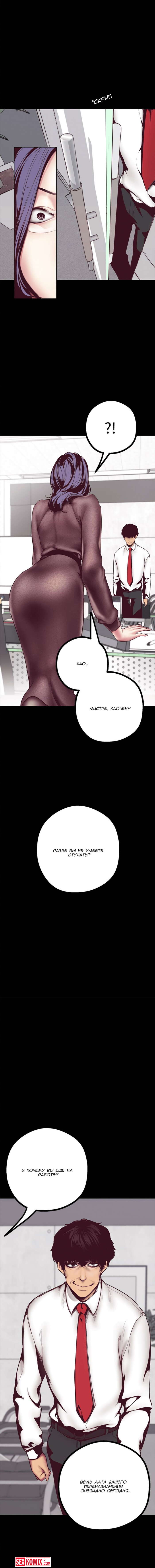 Порно комикс Прекрасный Новый Мир. Части 5 и 6. Beautiful New World. Горячая начальница проявила внимание к своем работнику и он решил, что она хочет секса с ним. Но когда он схватил милфу за сочную грудь, она дала ему пощёчину.