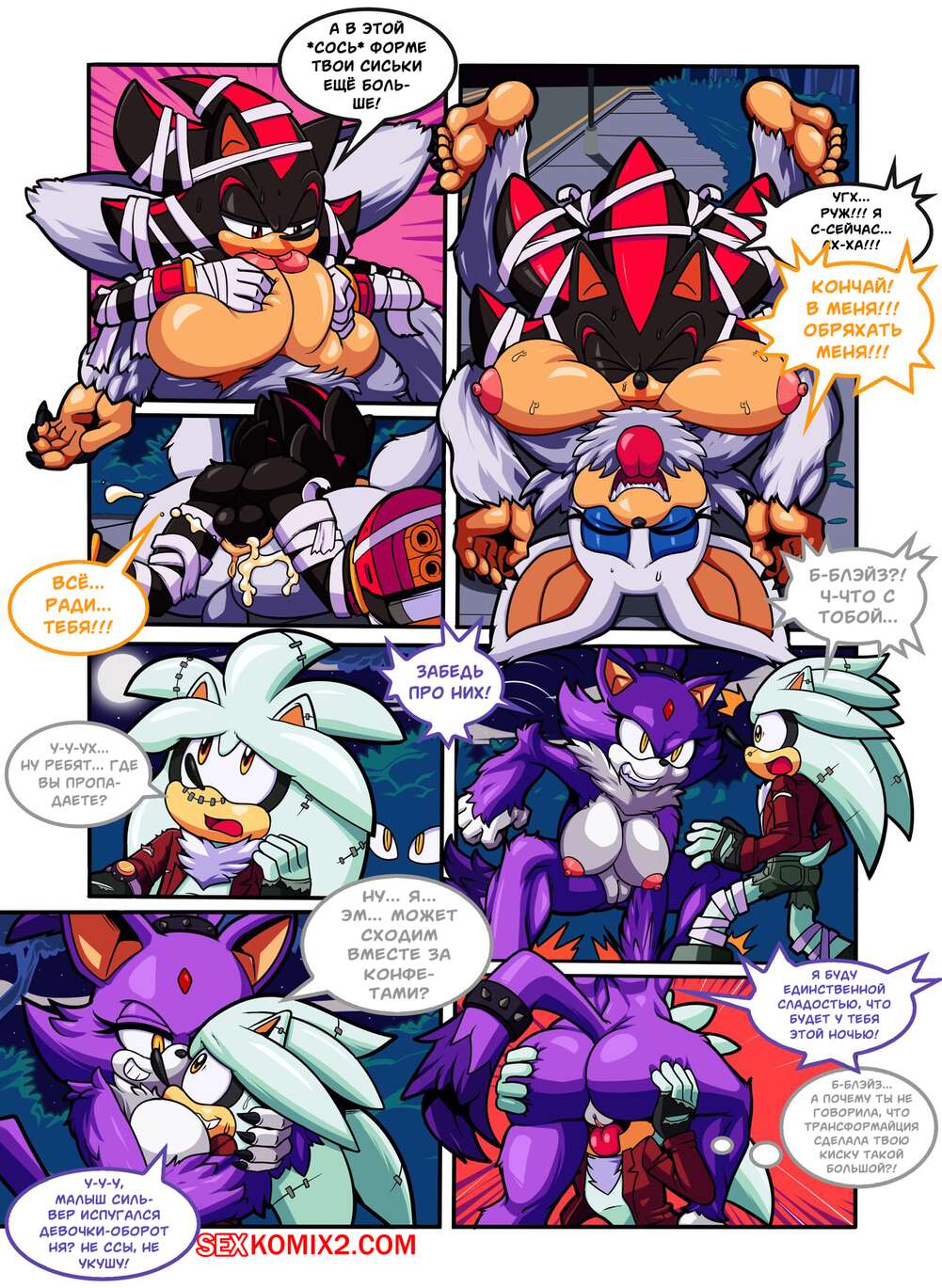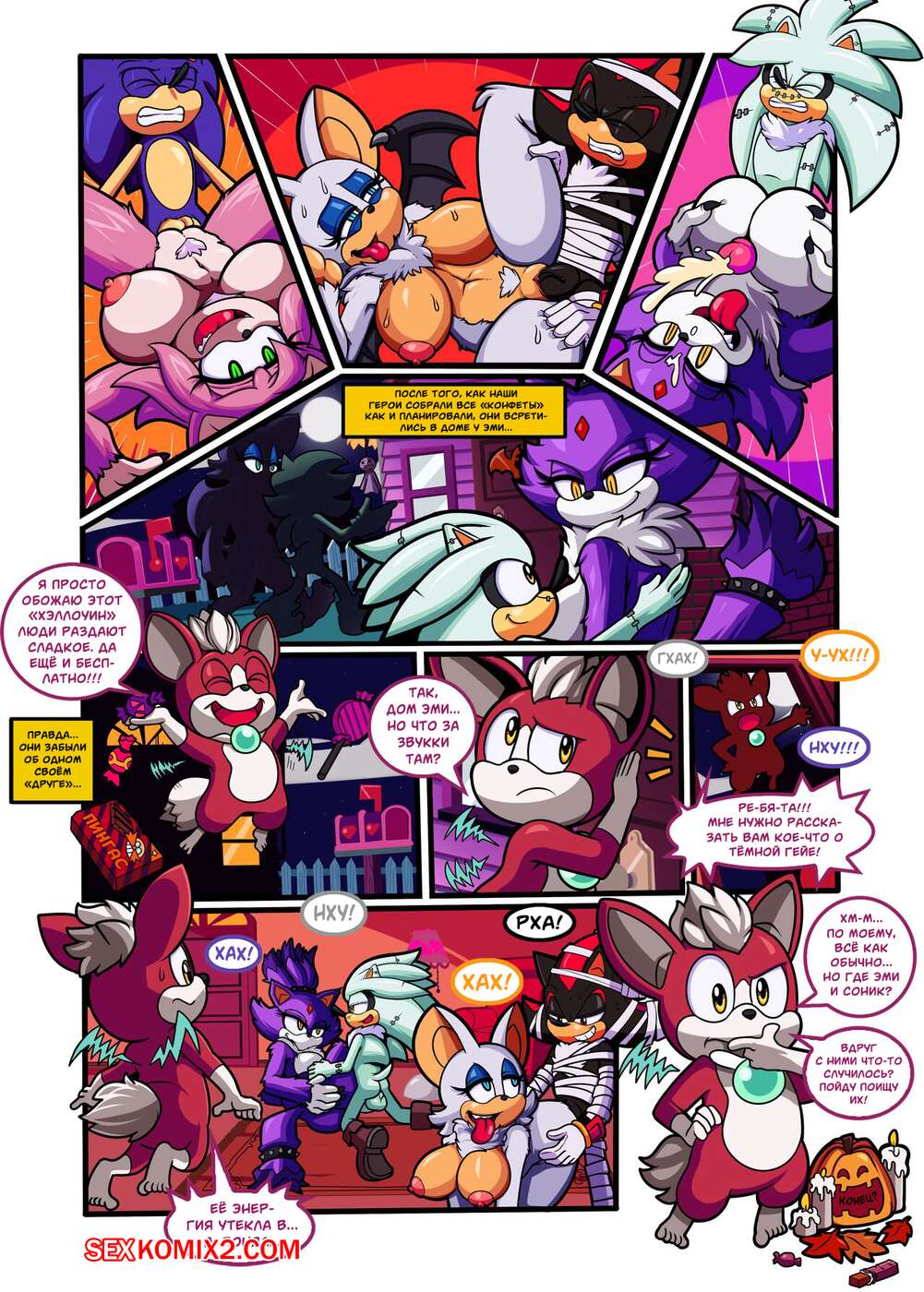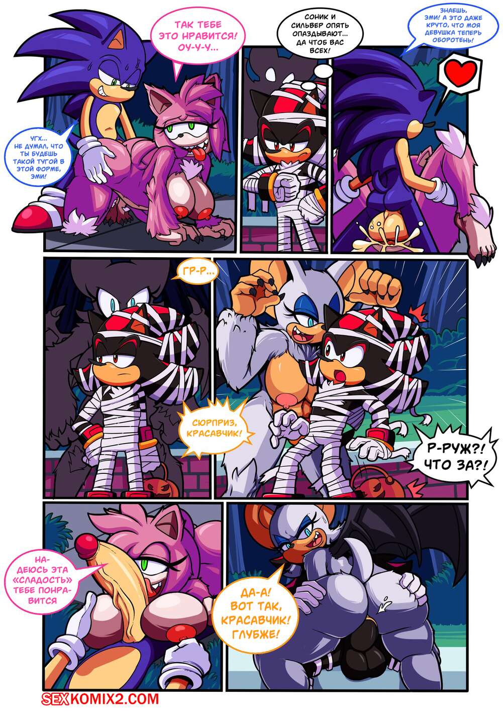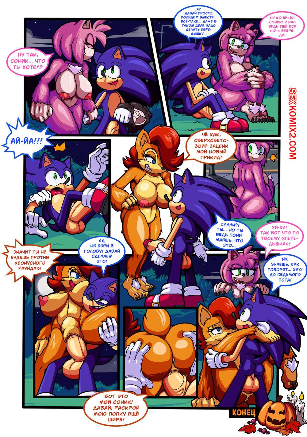 Порно комикс Sonic The Hedgehog. Хэллоуин. Calloeen. Escopeto Горячие красотки решили повеселиться со своим дружкам на Хэллоуин. Девушки разделись и возбудили парней шикарными телами, после чего дали им себя хорошенько выебать.