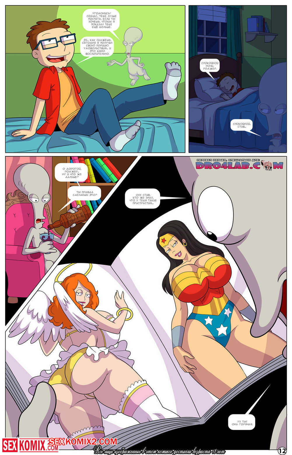 Порно комикс American Dad. Истории американского сына. Часть 1. Arabatos. Парень и его друг мечтают о том, чтобы трахнуть девушку с большими сиськами. Их мечты наконец начинают сбываться и друзья попадают в круговорот секса.