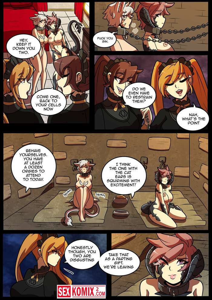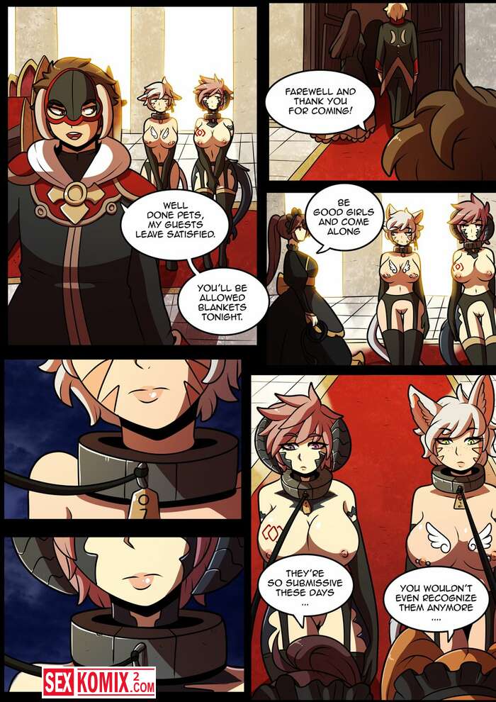 Порно комикс Проблемы Гарлена. Kinkymation. Английский. Две девушки кошки попали к злому королю, он сделал из них секс рабынь и использовал для утех.