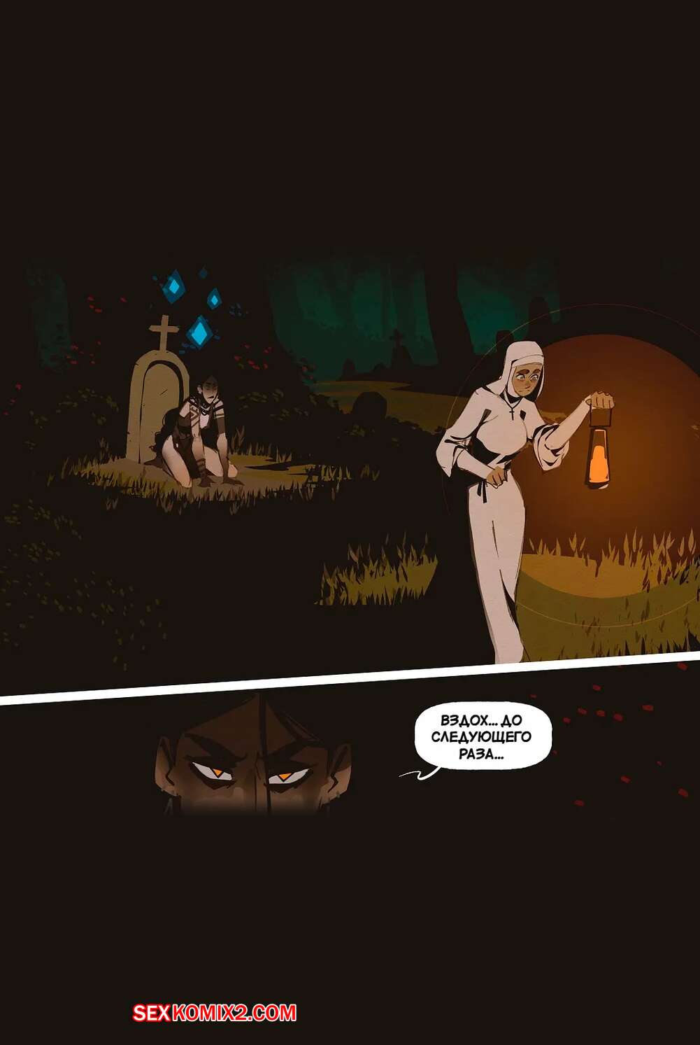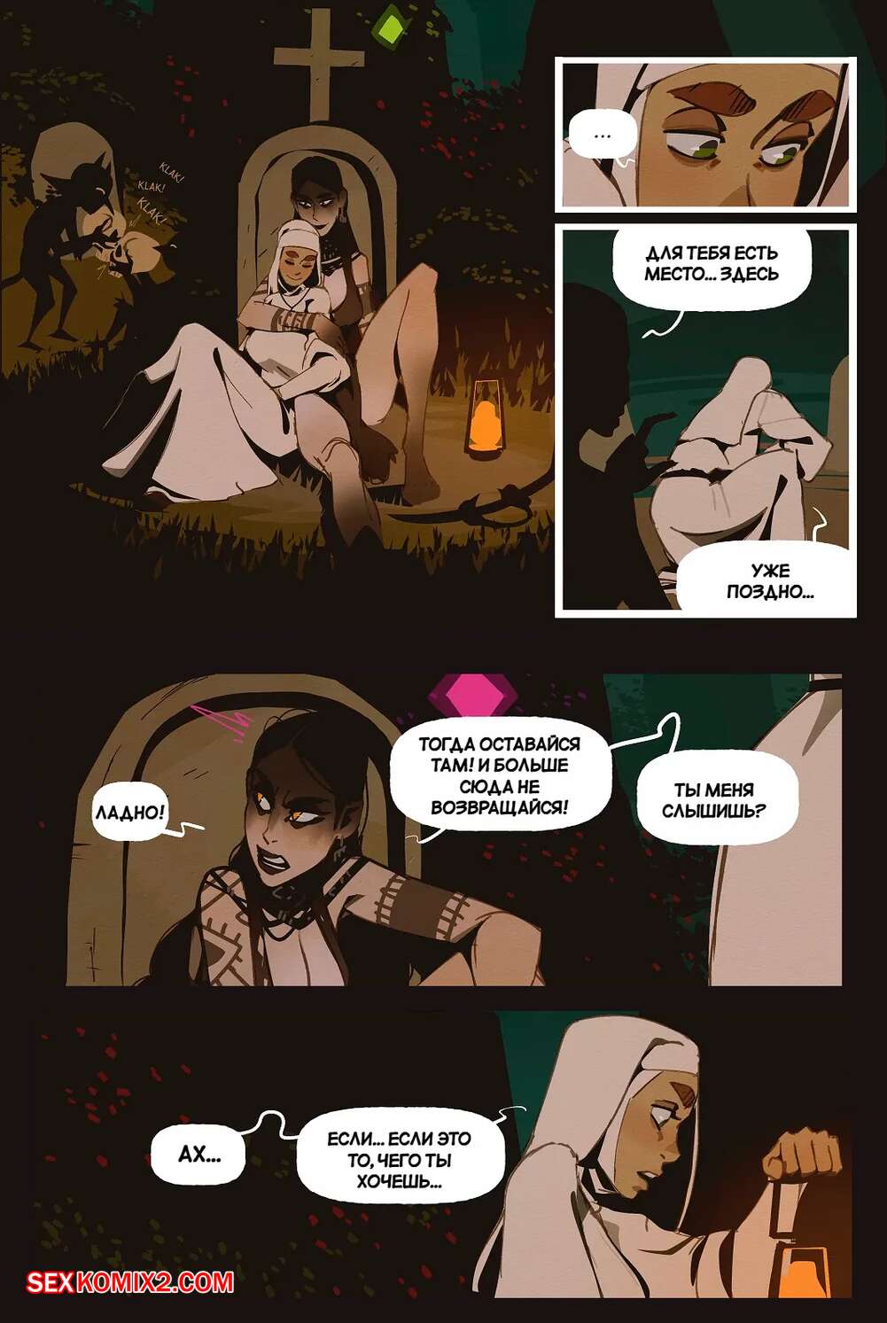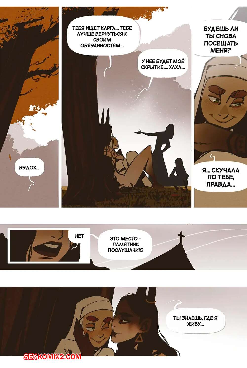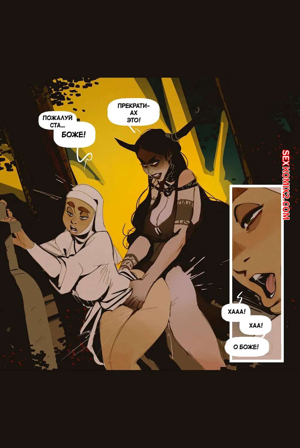 Порно комикс Ведьма и монашка. The Witch and the Nun. incase. Горячая монашка отправилась ночью в лес, где она встретила сексуальную ведьмочку. Та наколдовала себе член и как следует выебала пизденку своей новой подруги, получив удовольствие.