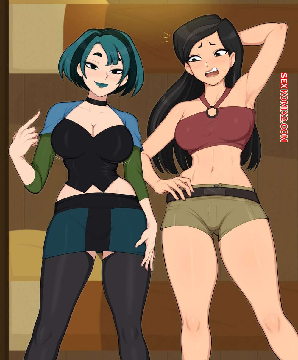 Порно комикс Gwen and Heather. Total drama island. Afrobull Горячие красотки были очень возбуждены и решили повеселиться со своим дружком. Они разделись и отсосали большой хуй парня, после чего дали ему себя выебать.