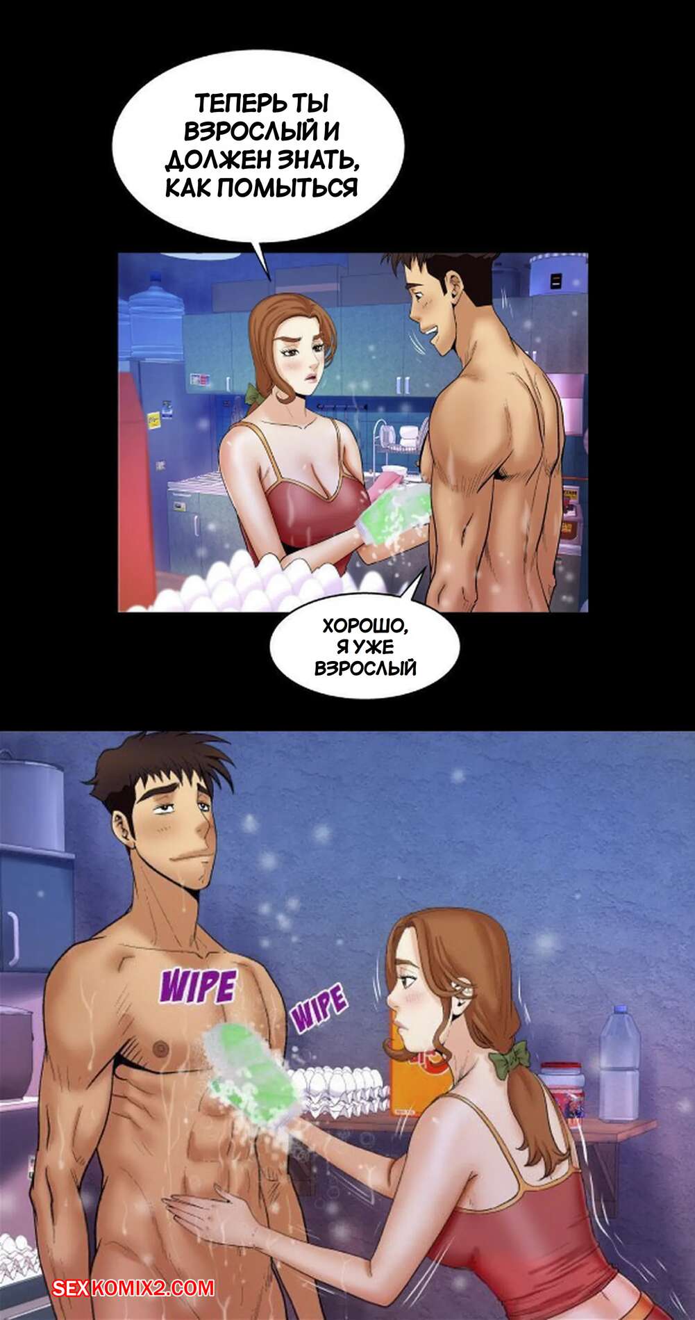 Порно комикс Моя тетя. Без цензуры. Часть 29. My Aunt. Toomics Горячая красотка уединилась с парнем в душе, желая повеселиться. Она разделась и возбудила парня шикарным телом, после чего запрыгнула на его член, чтобы он ее выебал.