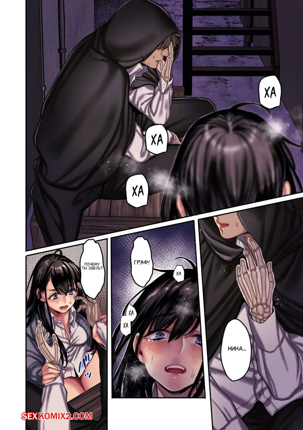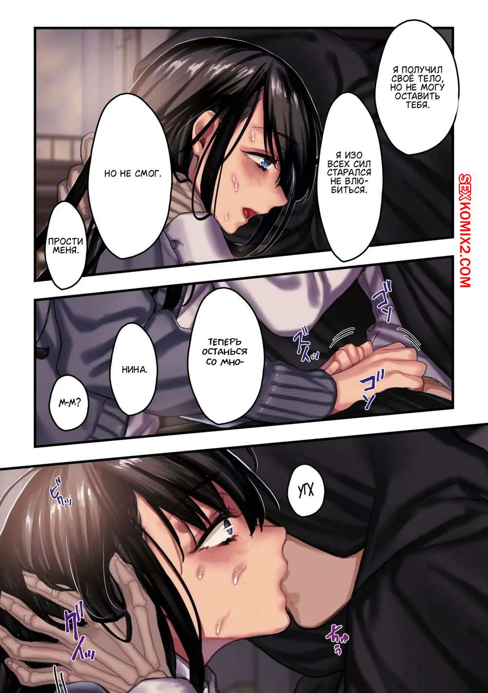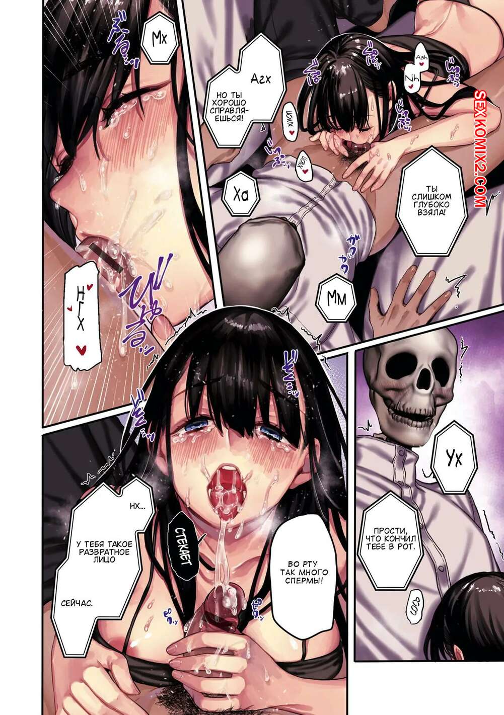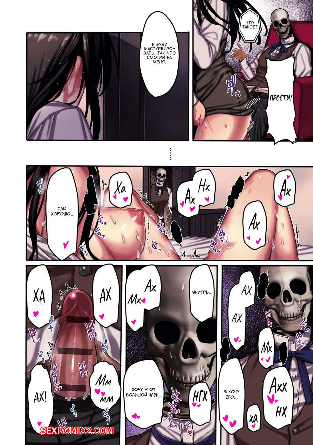 Порно комикс Привязанный к земле дух. Часть 2. Rororogi Mogera Горячая брюнетка была очень возбуждена и решила повеселиться со своим дружком с головой скелета. Она отсосала большой хуй парня, после чего дала выебать свою пизденку.