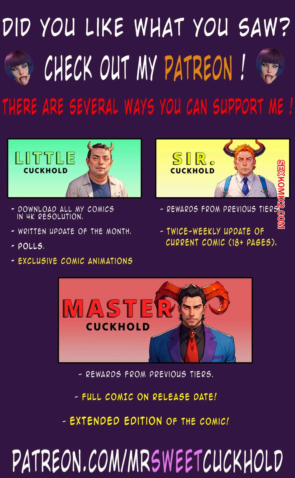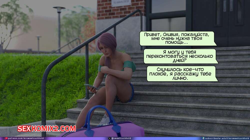 Порно комикс Тайное предательство. Часть 6. Undercover Betrayal. Mr.SweetCuckhold Горячая красотка Эшли поругалась со своим мужем Ником и отправилась жить к своей подруге Оливии. Там она услышала как подруга трахается с клиентом, а на следующий день парень выебал и нашу героиню.