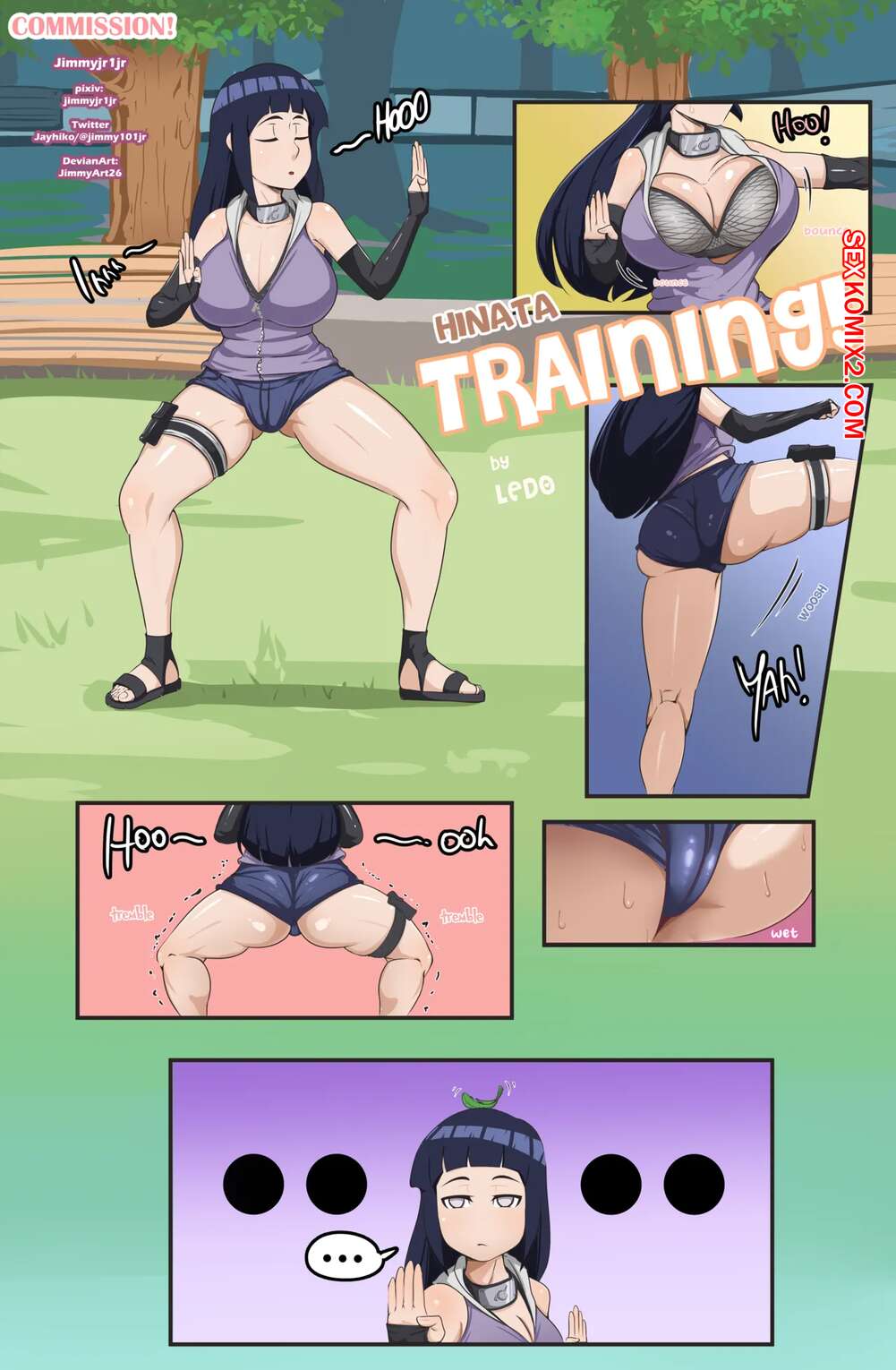 Порно комикс Наруто. Тренировки Хинаты. Hinata Training. Ledo. Горячая красотка Хината тренировалась на улице и обратилась к парню за помощью. Девушка стала тереться своей огромной задницей о член парня, возбуждая его.