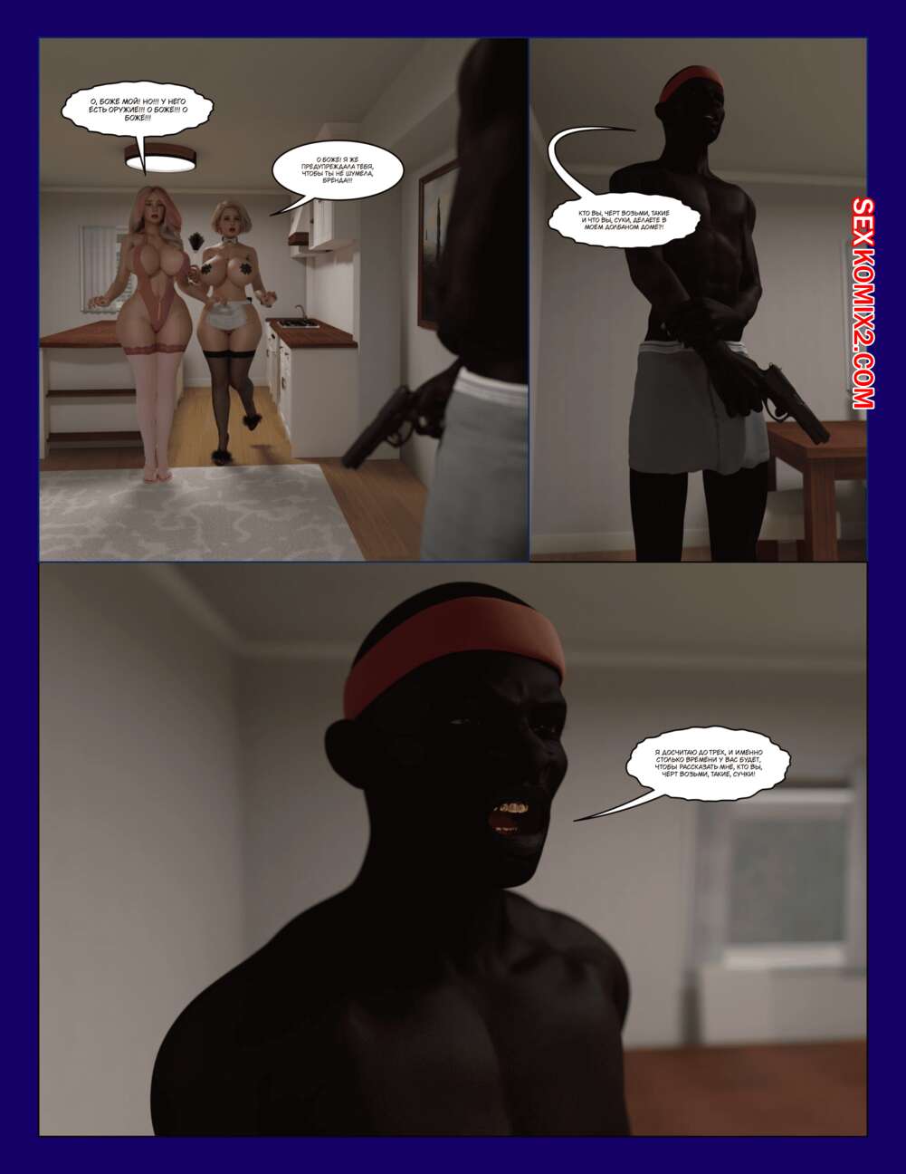 Порно комикс The Millers. Часть 4. Moiarte Темнокожие парни соблазняют горячих красоток своими большими хуями. Девушки раздеваются и сосут большие хуи парней, после чего дают им себя хорошенько выебать.