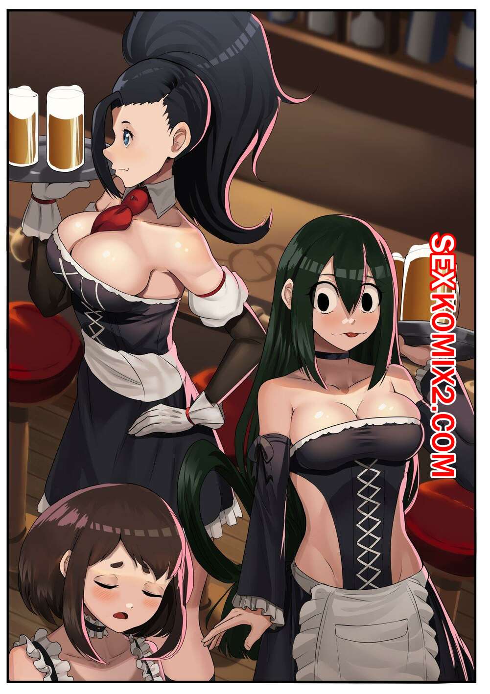 Порно комикс Академия. Моя Геройская Служанка. Nico mo Парни напились и решили повеселиться с горячими красотками. Они раздели их и дали им отсосать свои большие хуи, после чего как следует выебали пизденки девушек.
