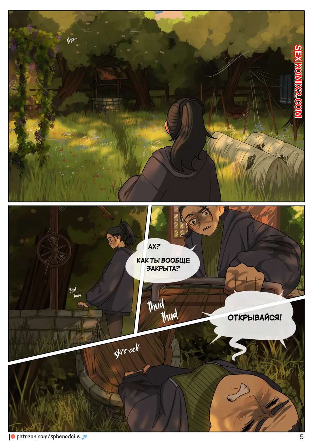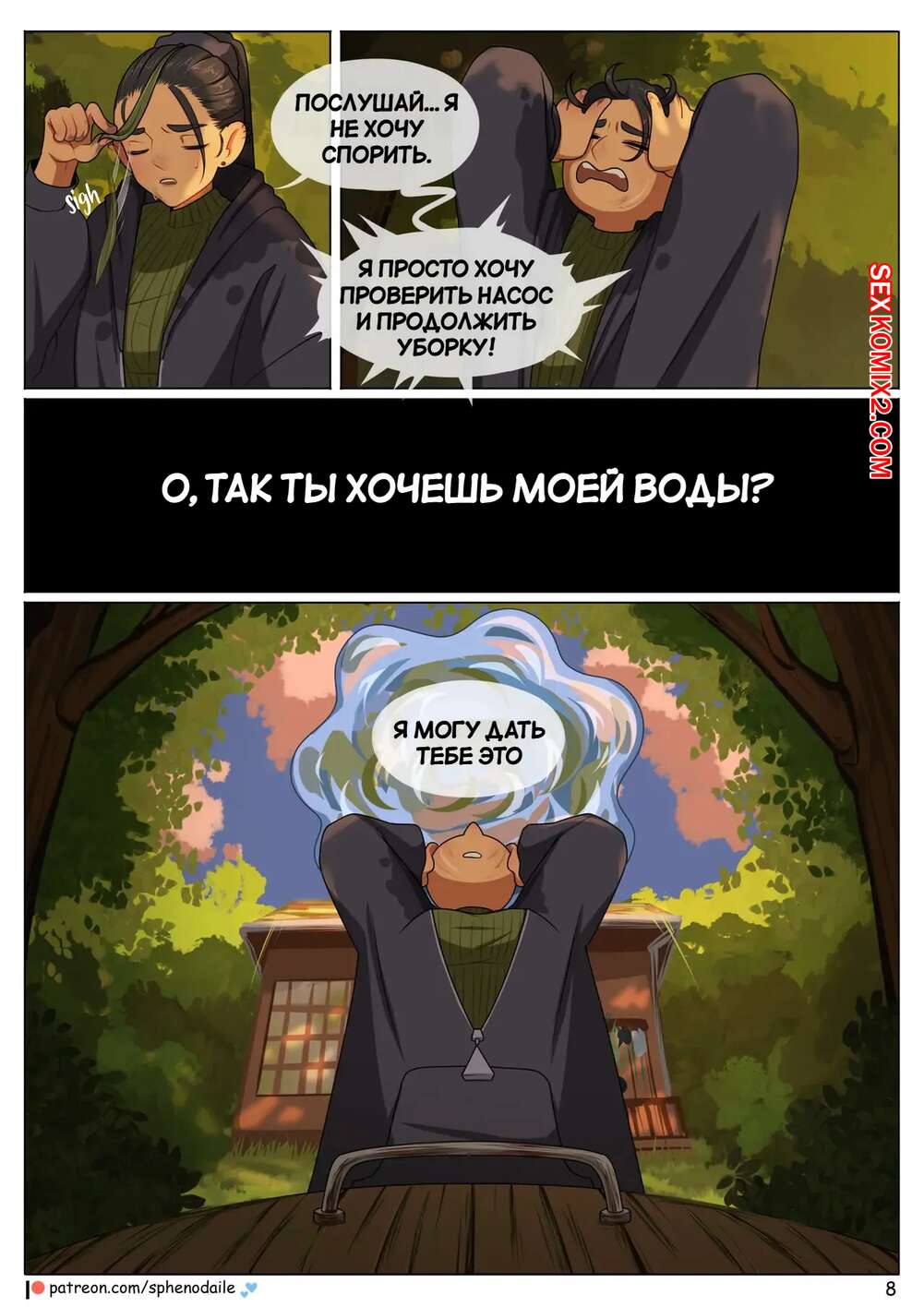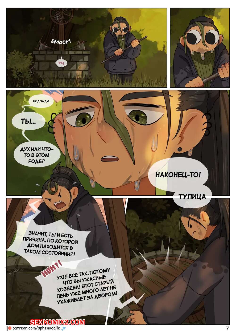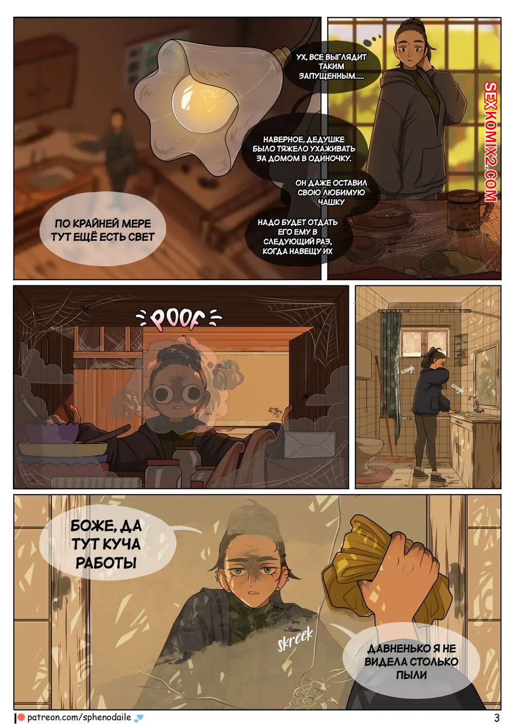 Порно комикс Под цветущей яблоней. Under The Apple Blossom. Sphenodaile Молодая девушка стала владелицей старого дома. Она приехала в него и решила заняться уборкой. Но вскоре новая хозяйка узнала, что ее ждут приключения впереди.