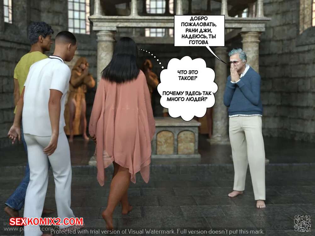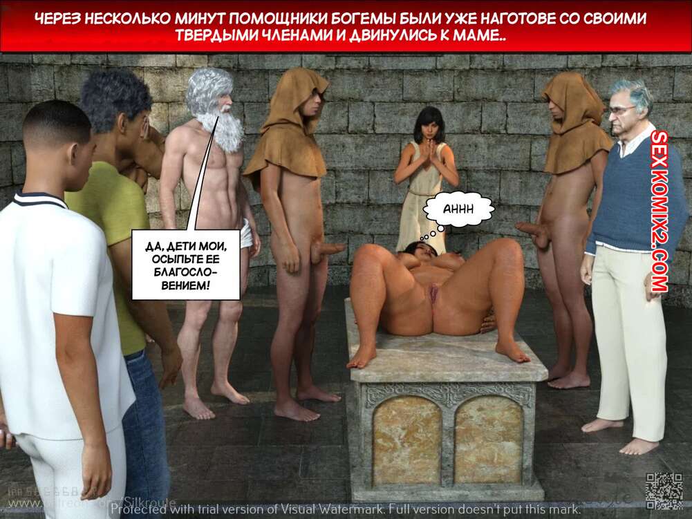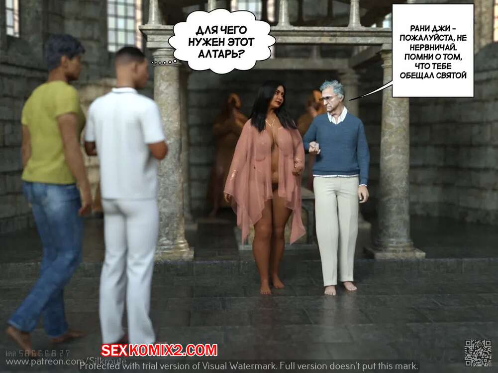 Порно комикс Тетушка Рани. Часть 2. Rani Aunty. Silk Route Сисястая милфа приняла ванну, чтобы наконец приступить к ритуалу. Красотка легла полностью голой перед толпой парней, после чего старик вставил в нее свой член и выебал ее пизденку.