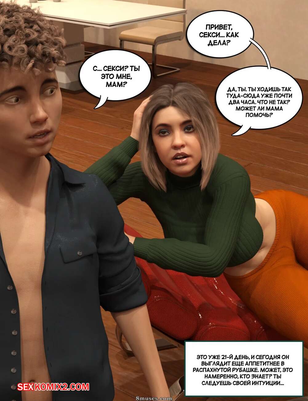 Порно комикс Ограничение для более глубоких связей. Confinement for Deeper Bonds Горячая милфа находится на карантине со своими детьми, что способствует их сближению. Мамочка раздевается и сосет большой хуй сына, после чего дает ему себя выебать. Вскоре к ним присоединяется и дочь зрелой красотки.