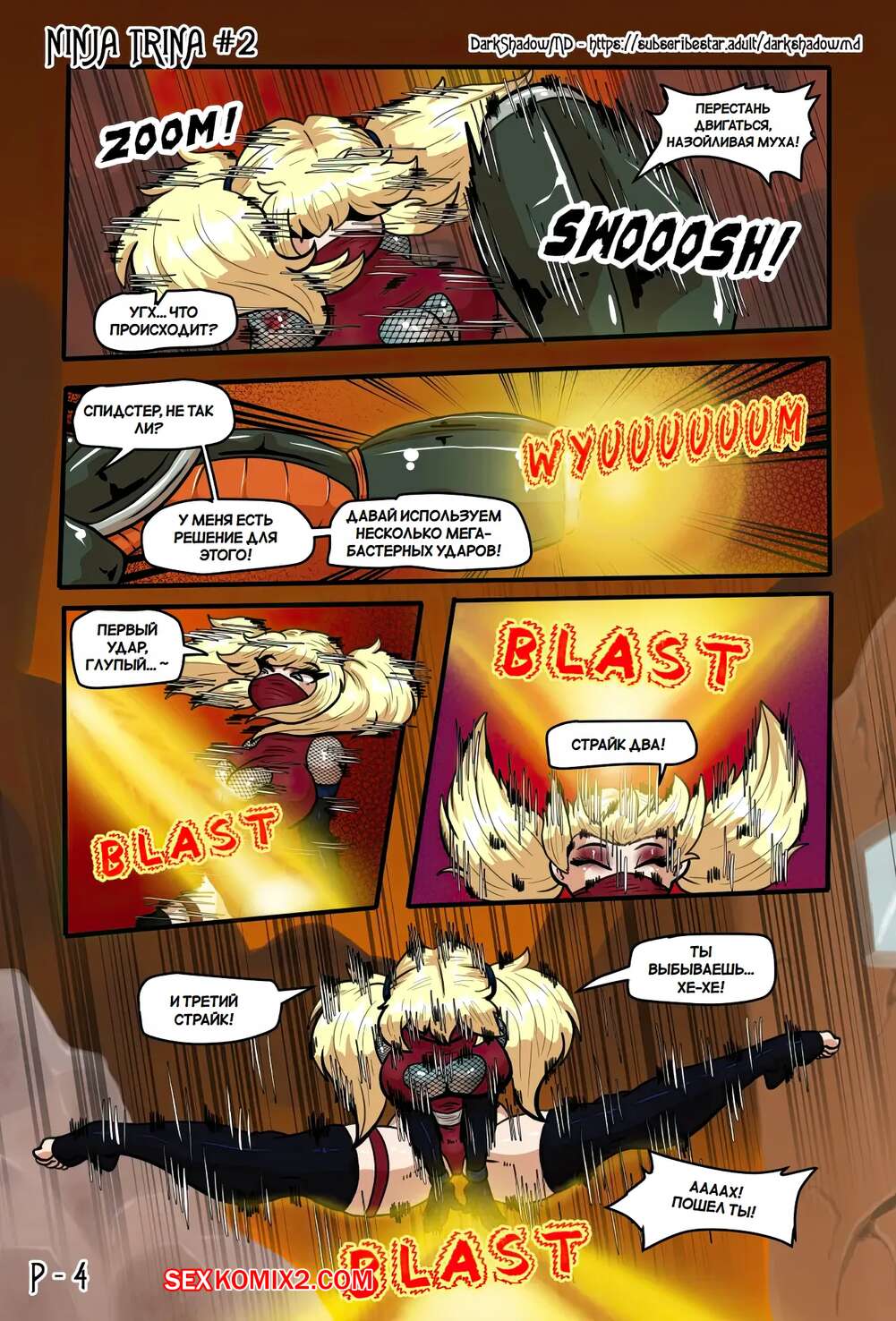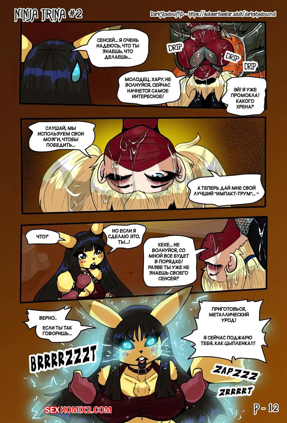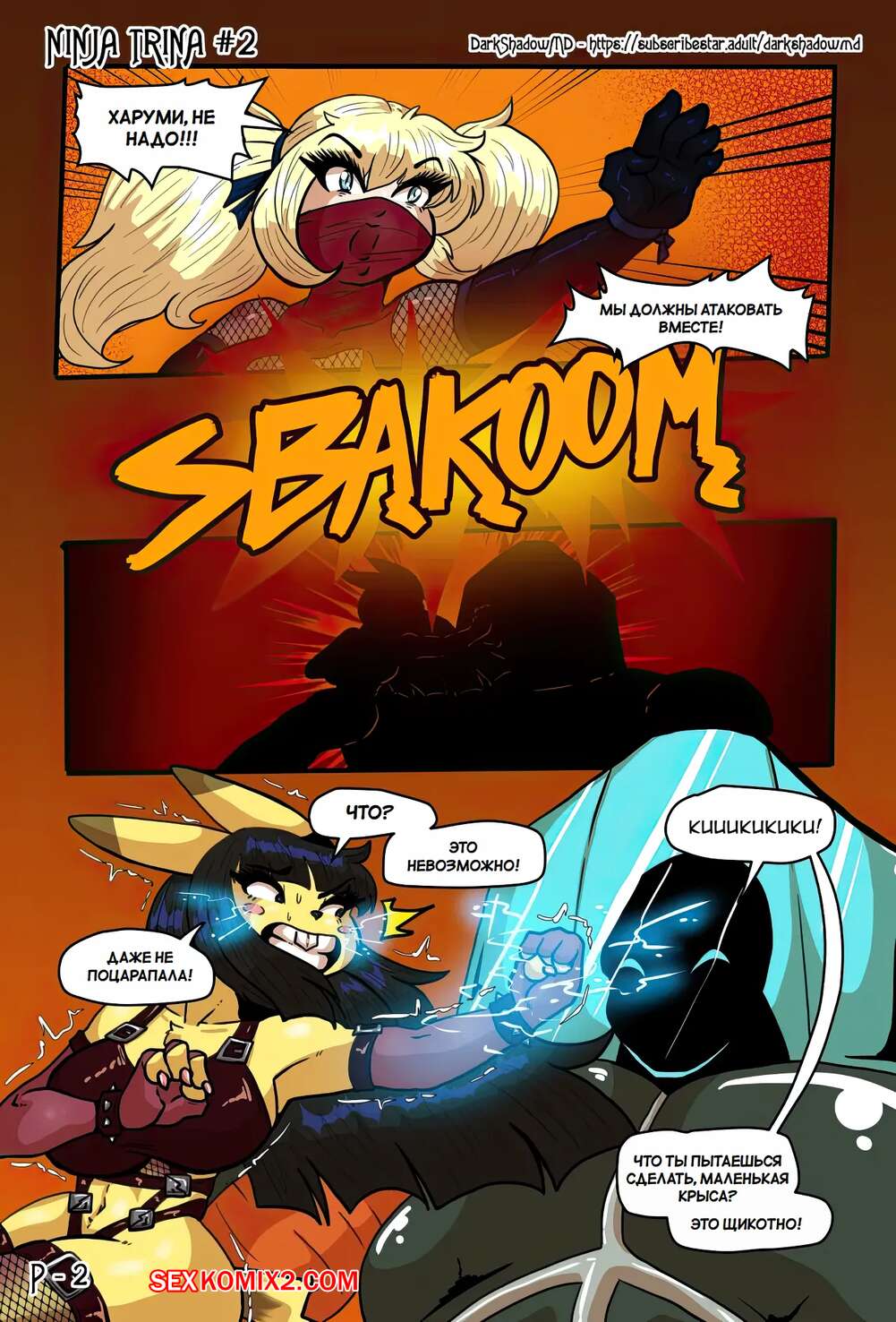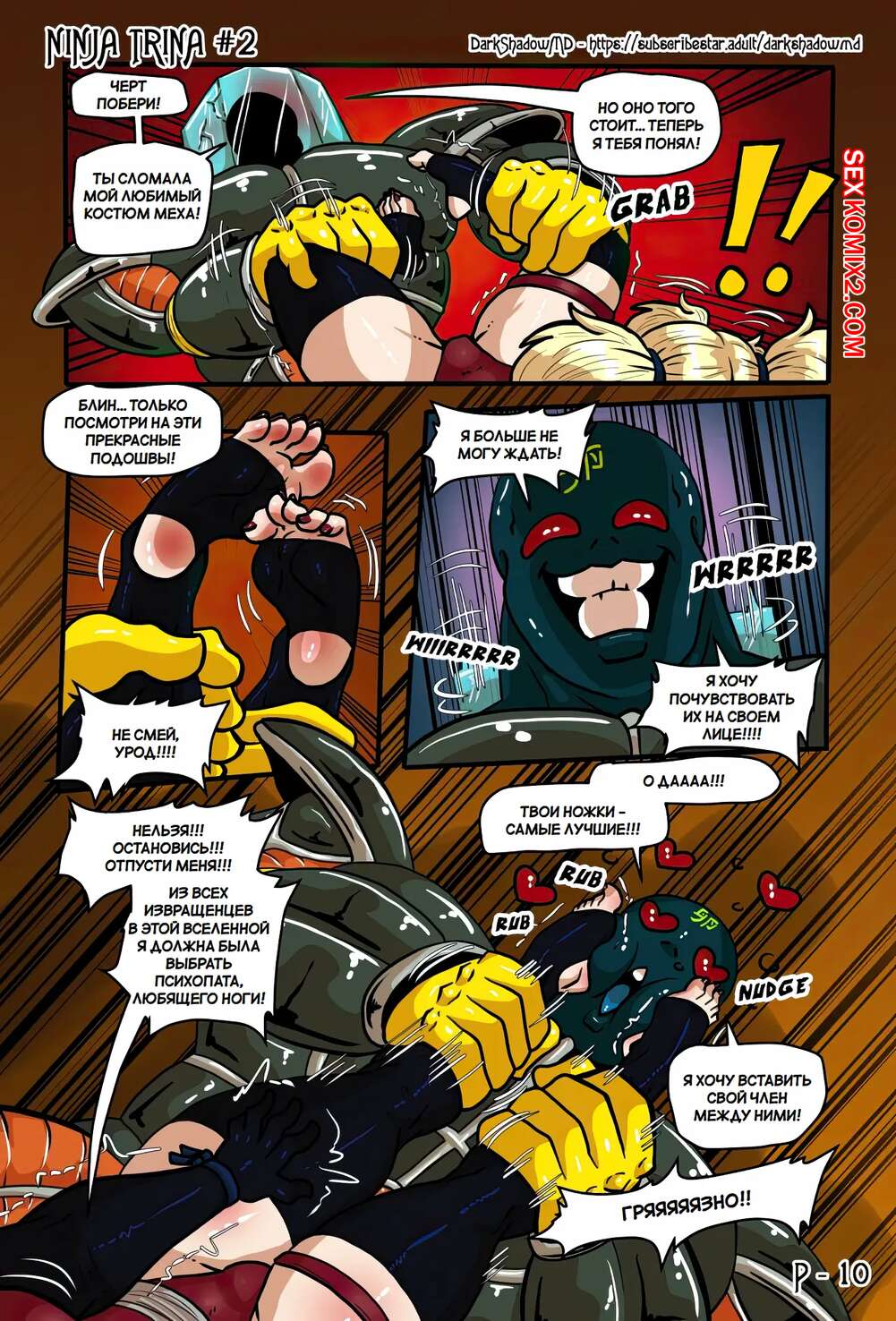 Порно комикс Ниндзя Трина. Часть 2. Ninja Trina. DarkShadow777 Горячие красотки ниндзя вступают в схватку с огромным роботом. Сперва девушкам удается наносить урон противнику, но затем он хватает девушек, чтобы выебать их с помощью щупалец.