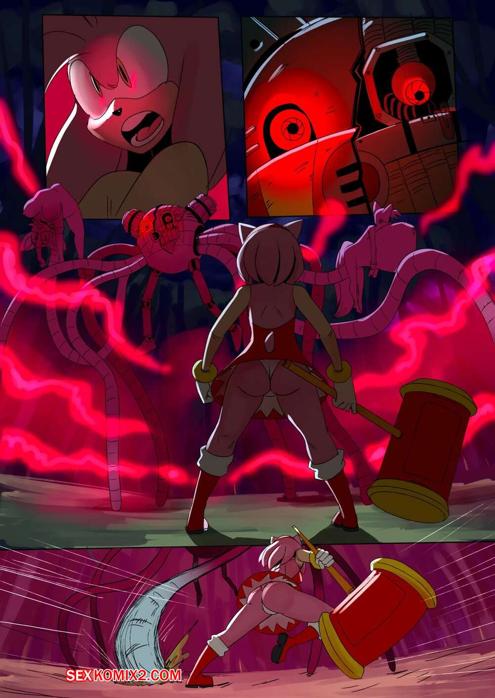 Порно комикс Соник. Пустая запись. Blank Entry. Underrock. Горячие красотки очень возбуждены и решают повеселиться со своими дружками. Девушки соблазняют парней, желая заняться сексом, но в это время их хватает робот Эгмана и ебет девушек своими щупальцами.