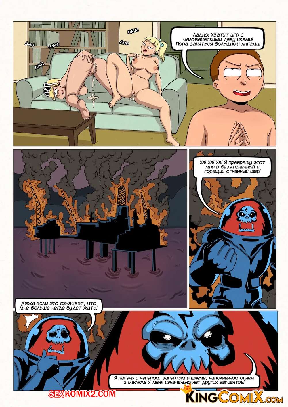 Порно комикс Рик и Морти. Другой Морти. Another Morty Sex Comic. Kingcomix Морти получил возможность делать с другими все, что он пожелает. Сперва парень воспользовалься моментом и выебал пизденку Саммер, после чего позвал к себе горячую блондинку, чтобы трахнуть и ее.