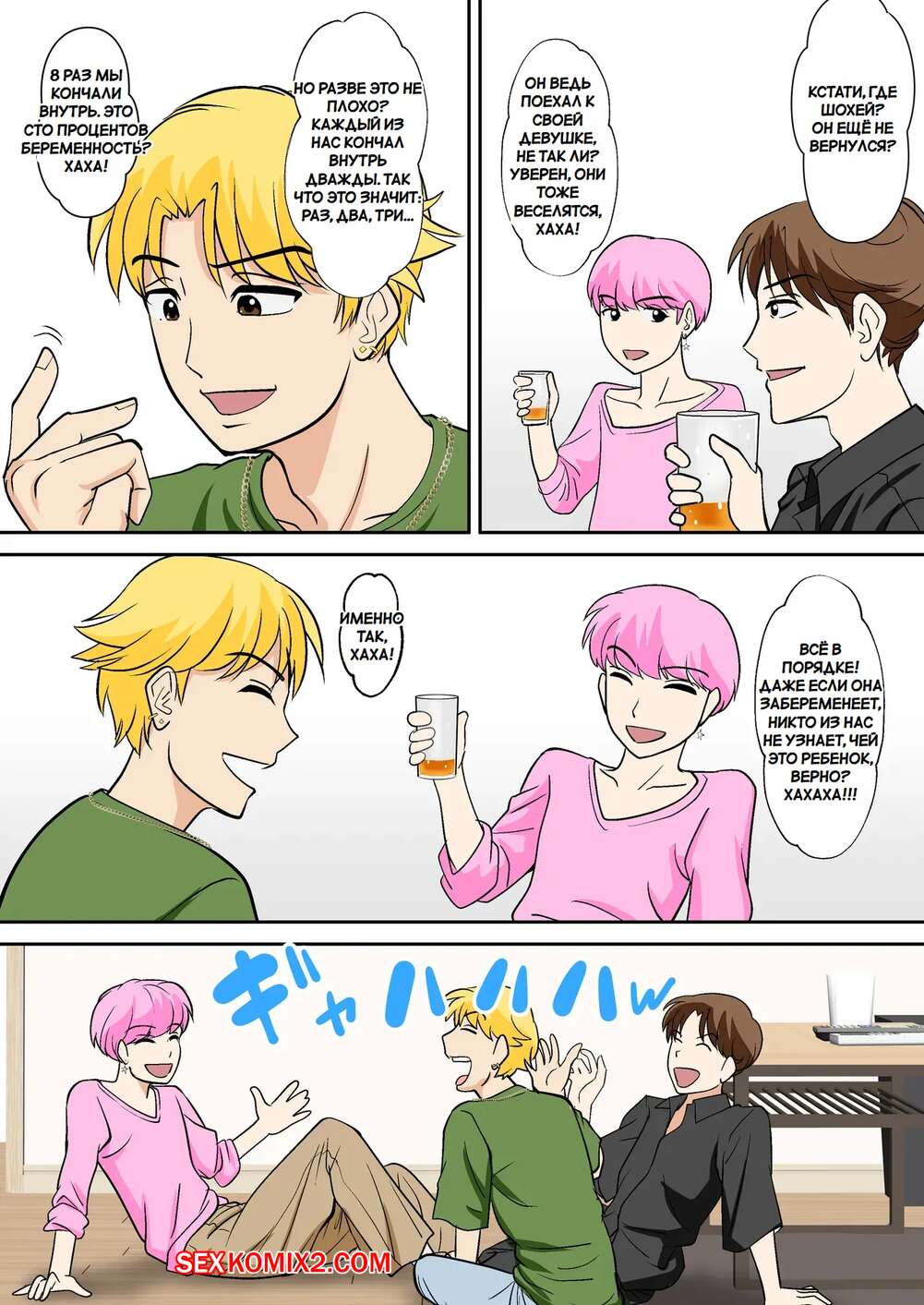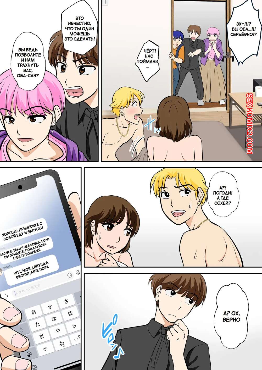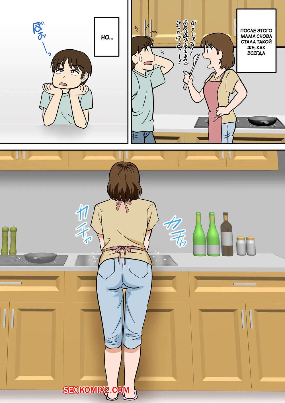 Порно комикс Горячая мамка соблазняет друзей сына. Fuwatoro Opanchu Cake. Молодой парень привел домой своих друзей за школы, а его горячая мамка решила соблазнить гостей и повеселиться. Красотка позвала парней в спальню, где отсосала их хуи и дала себя выебать.