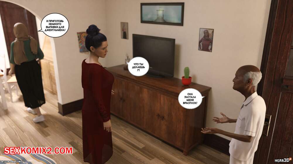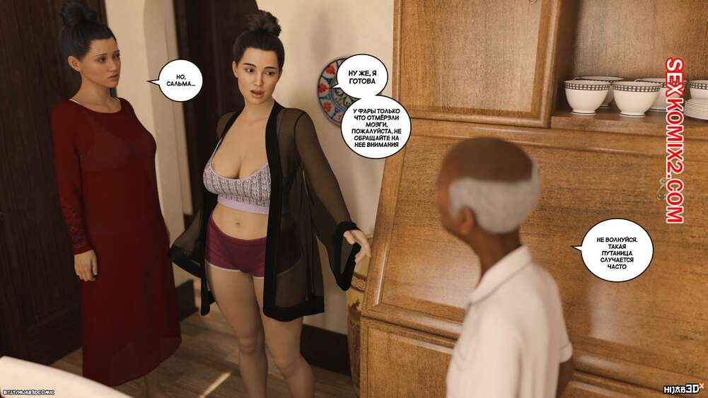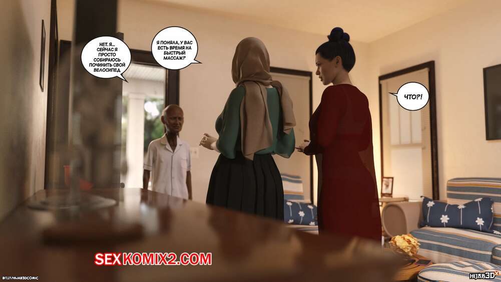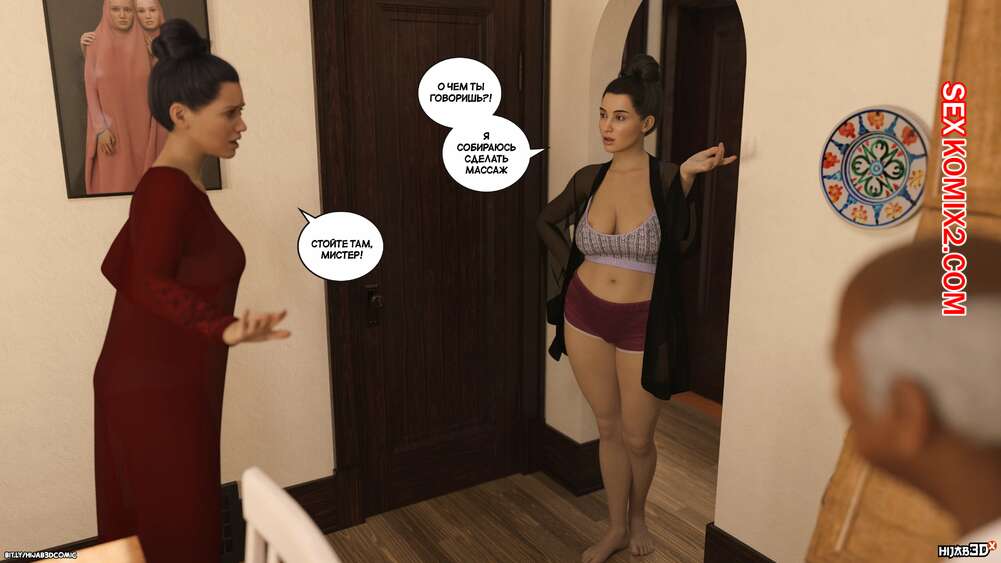 Порно комикс Массажист. Часть 7. The Masseur. LoseKorntrol Старик и Фара объясняли ее сестре что он делает дома у девушки. Сальма все выслушала и поверила рассказу, после чего попросила массажиста остаться и сделать ей массаж плечей.