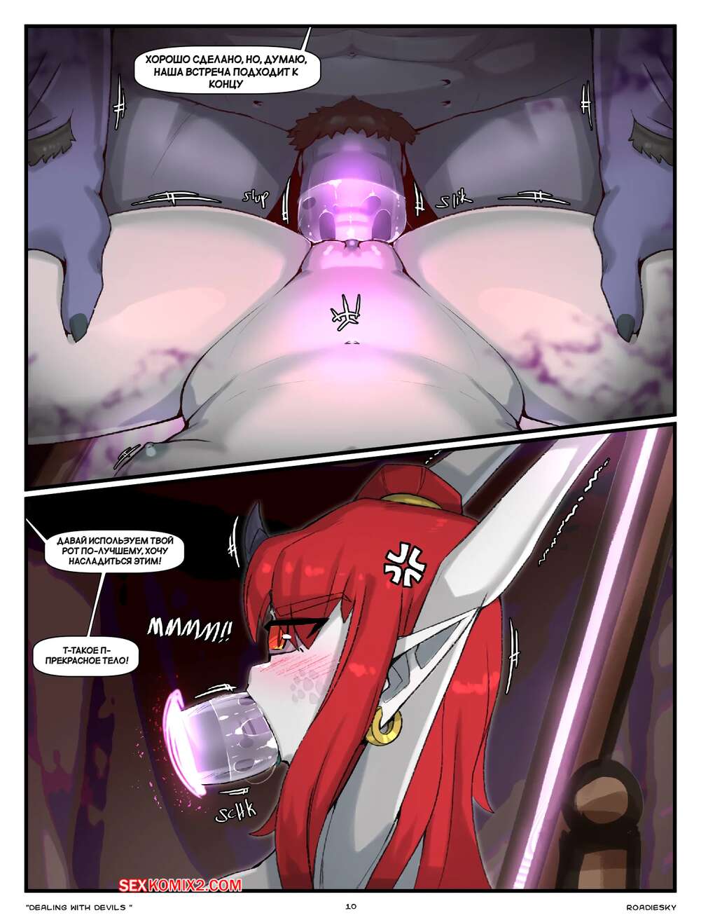 Порно комикс Договариваясь с Дьяволом. Roadiesky Рыжая красотка согласилась на сделку с дьяволом. Он раздел красотку и хорошенько выебал ее пизденку своим огромным хуем, доставив ей невероятное удовольствие.