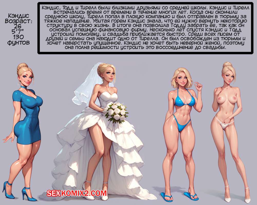 Порно комикс Еще одна вещь. One more thing. Dartzai. У горячей блондинки Кэндис завтра свадьба, но ей предстоить сделать еще коечто перед церемонией. Красотка отправляется к своему бывшему парню, чтобы напоследок насладиться черным членом.