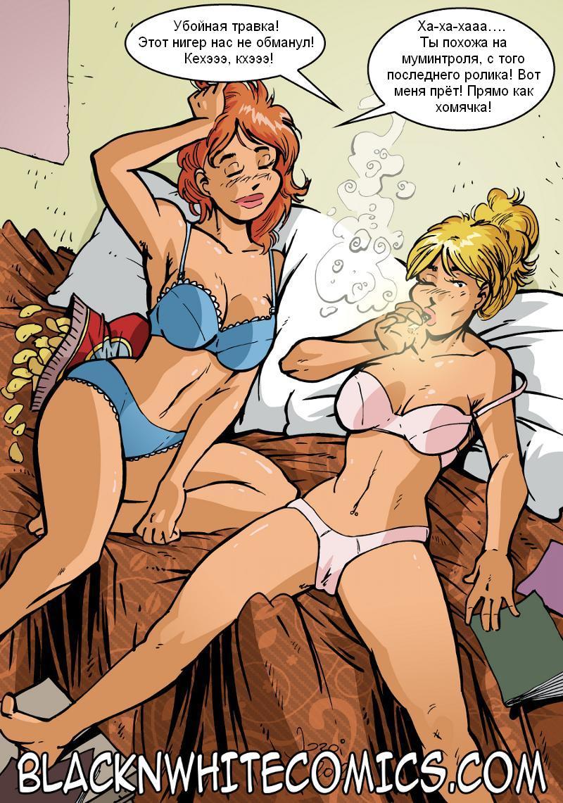 Порно комикс «Полиция Кампуса». Этот комикс для взрослых о там как двое полицейских проверяя коридоры общежития кампуса учуяли запах марихуаны и выяснив из какой комнаты он бы, ворвались и обнаружили нарушителей. Это были две сексуальные студентки, она обкурились и в одном нижнем белье веселились на кровати. Полицейские пригрозили девушкам штрафом и тем, что они всё расскажут декану и их могут исключить на это из университета. Но чтобы мужчины молчали, девушки предложили им свои нежные тела для жесткого секса. В этом случае выигрывают все.
