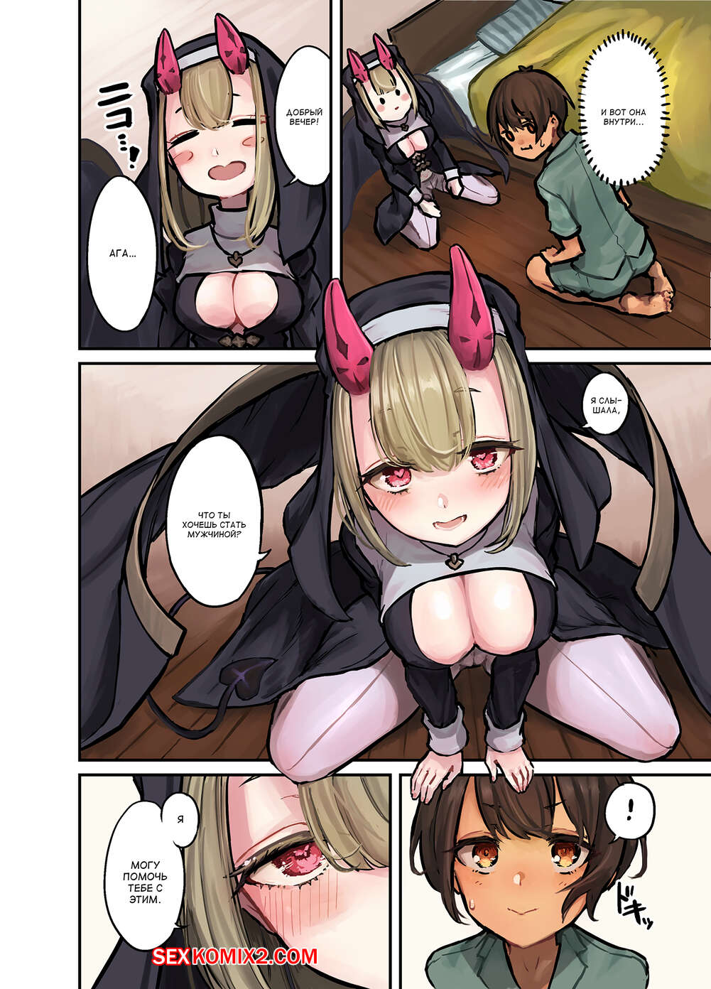 Порно комикс Sister Succubus. Tonight Is Succubus Nun. Sokumaru Горячая монашка суккуб была очень возбуждена и решила повеселиться с молодым парнем. Она стала к нему приставать, желая возбудить и заняться страстной еблей.