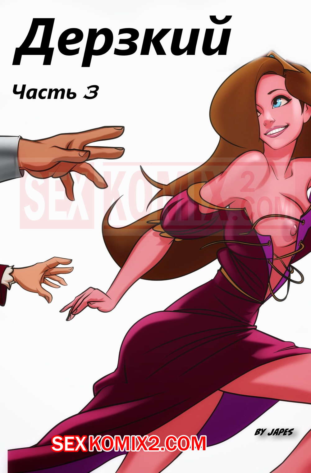 Порно комикс Дерзкий. Часть 3. Japes. На этот раз принцессе удалось попасть в замок к графу Дракуле, где он решил устроить групповой секс с ней и своей любимой девушкой. К счастью, нашелся спаситель, который отвел принцессу к своему королю. Там спаситель и король решили трахнуть принцессу на двоих.