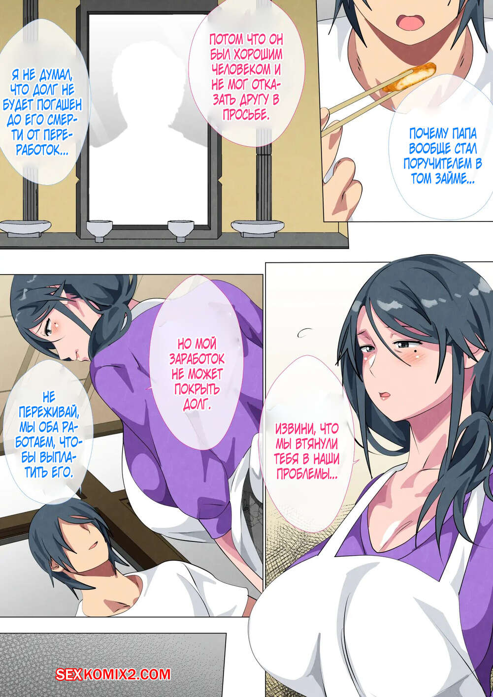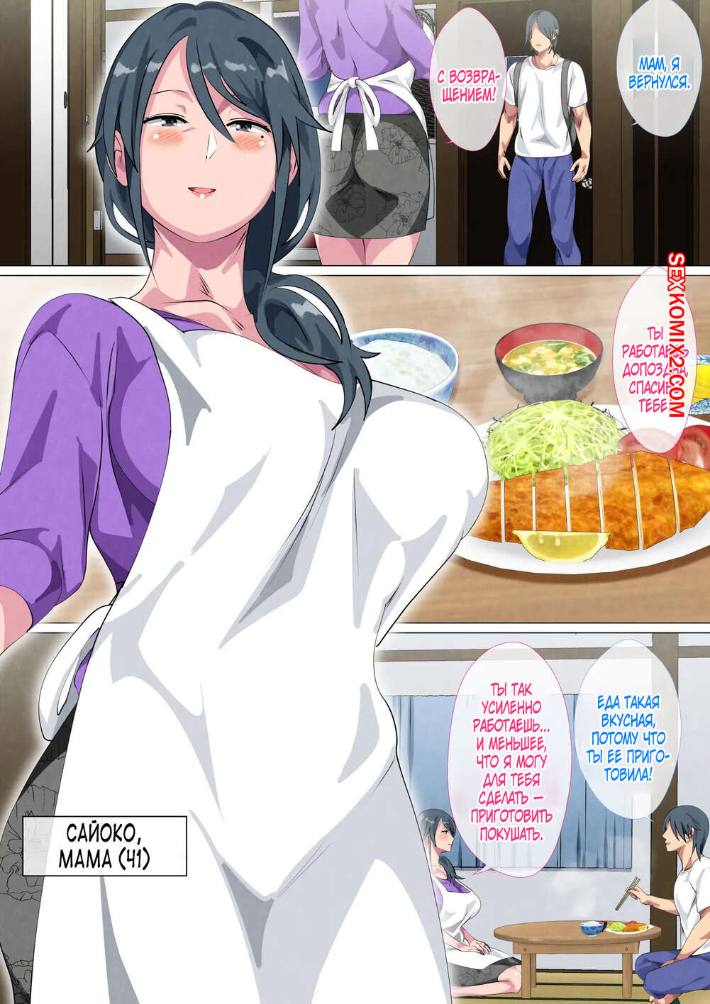Порно комикс Record Of A Copulation Of A Mother And Son Living In A Small Room. Spices Молодой парень без ума от шикарного тела своей горячей мамочки. Он раздевает красотку и соблазняет ее своим большим хуем, после чего хорошенько ее трахает.