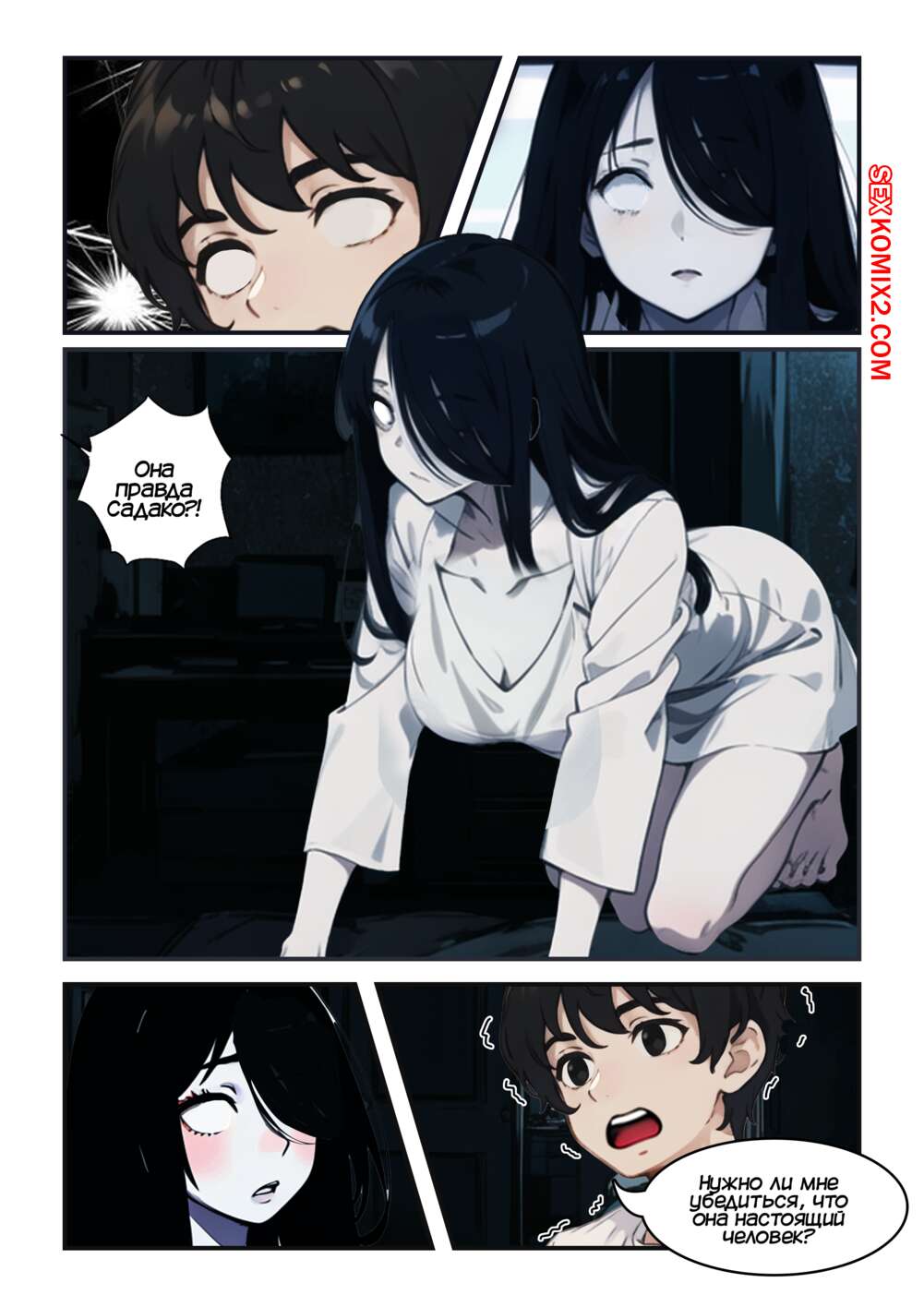 Порно комикс Моя любимая Садако. My Beloved Sadako. Kahoo Горячая брюнетка вылезла из телевизора и оказалась в комнате молодого парня. Он был поражен шикарным телом девушик и попросил ее раздеться, после чего хорошенько выебал ее пизденку.