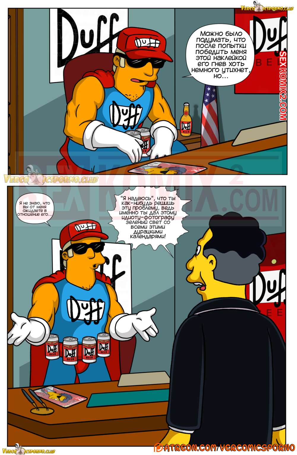 Порно комикс Симпсоны. Титания. Владелец напитка заметил, что продажи начали падать. Он позвал к себе лицо компании Дафф, что бы обсудить пиар компанию. Пришли к мнению, что в их рекламе должно быть больше девушек. Настало время провести кастинг.