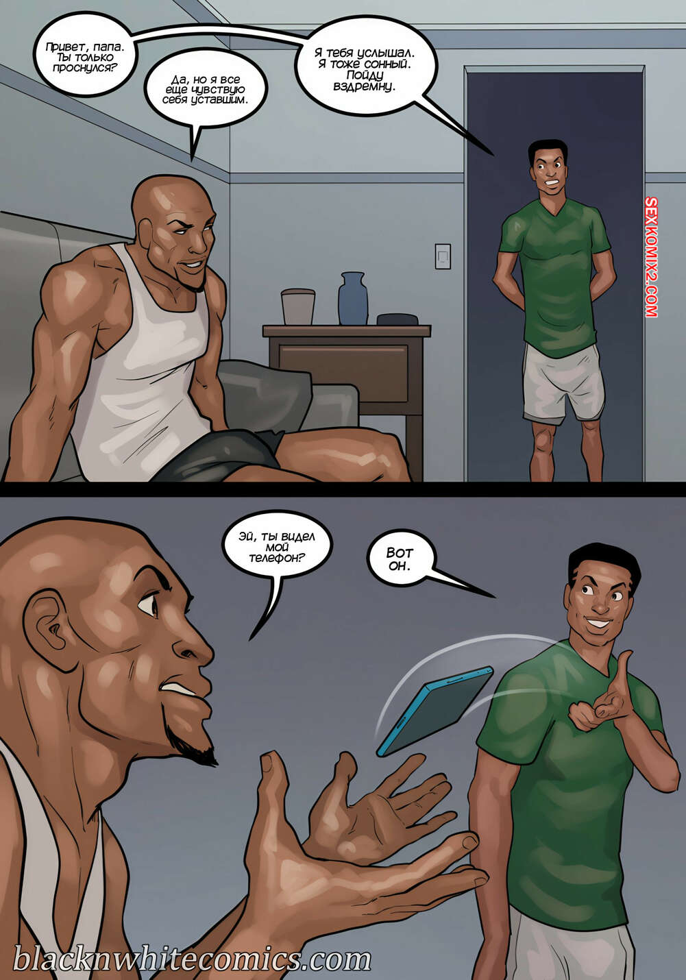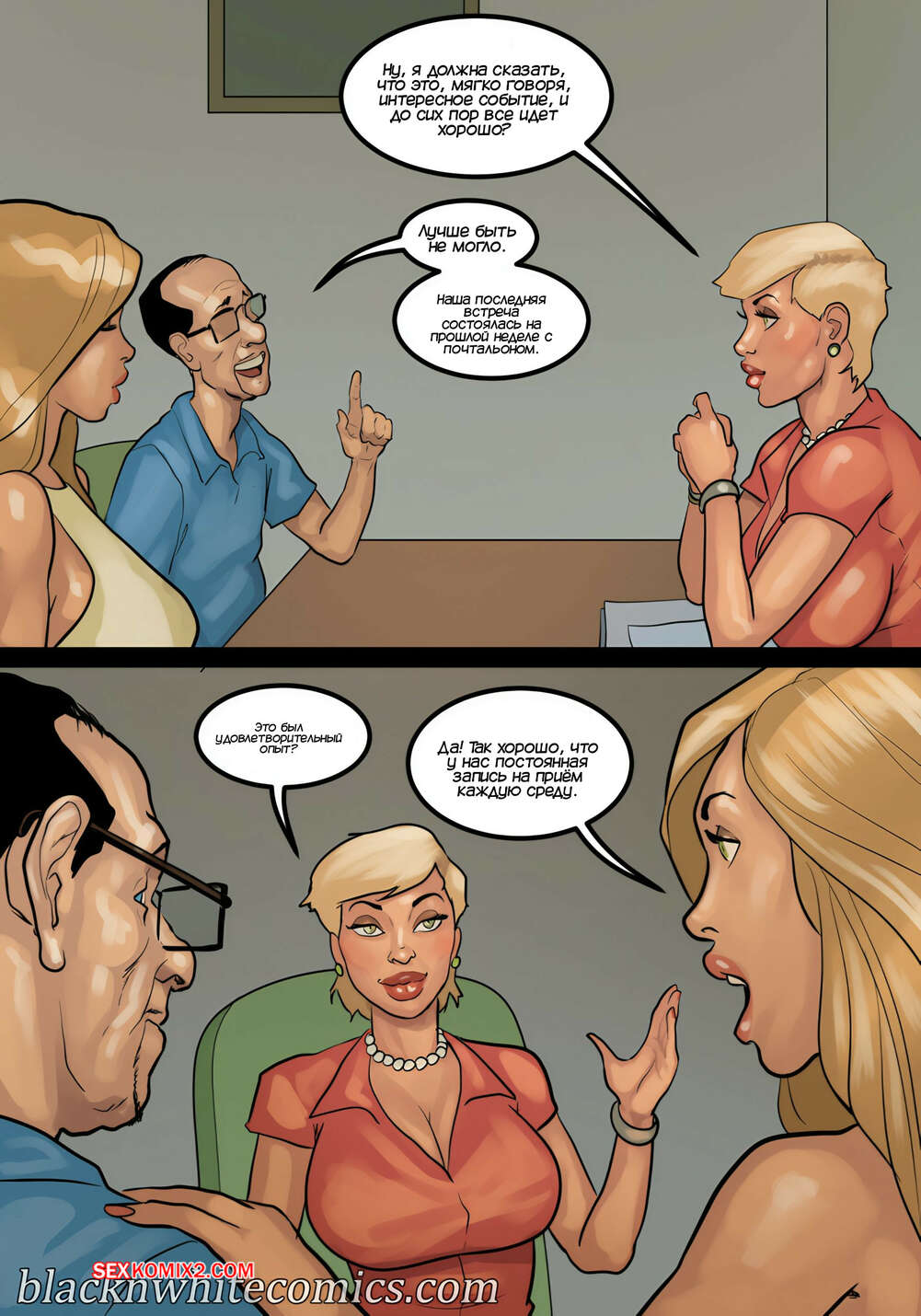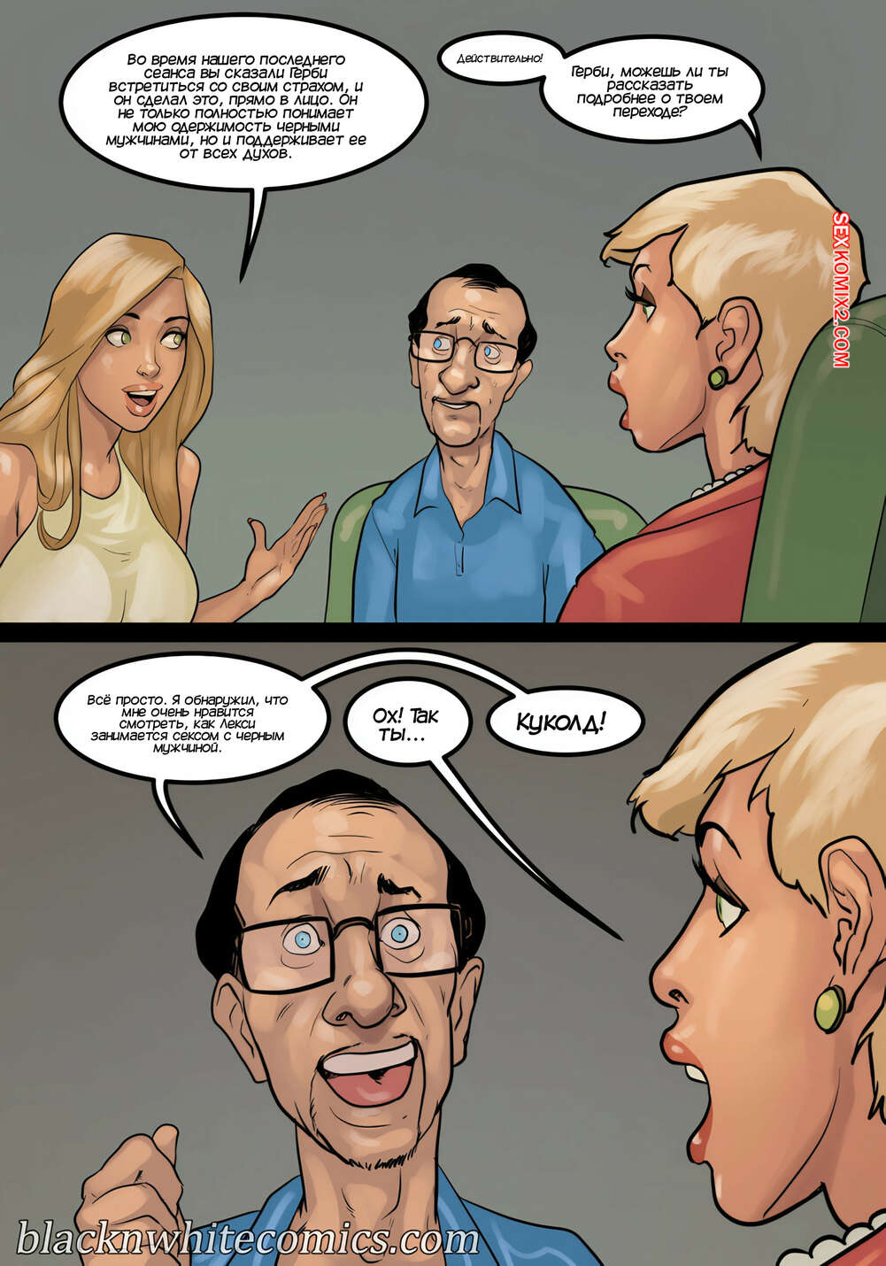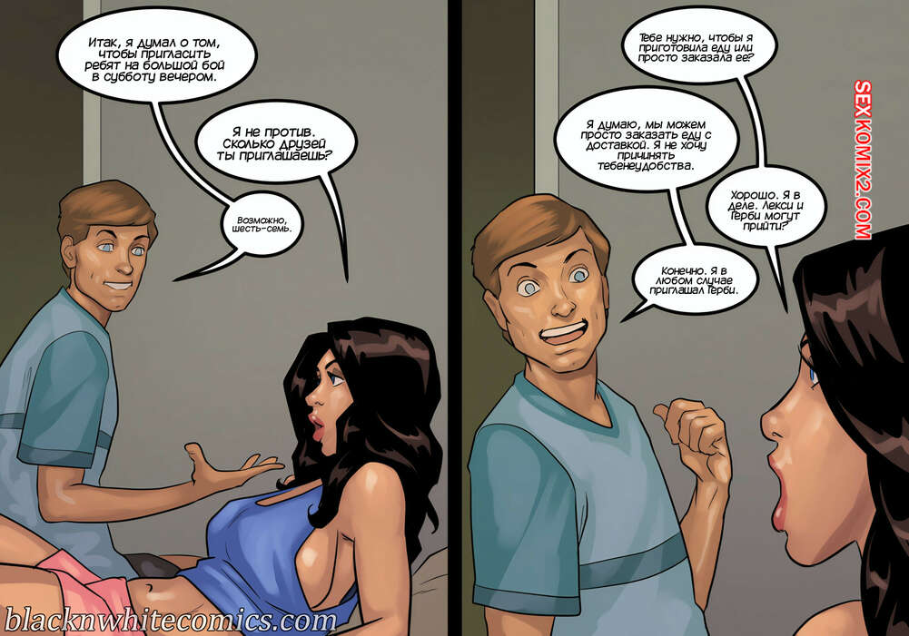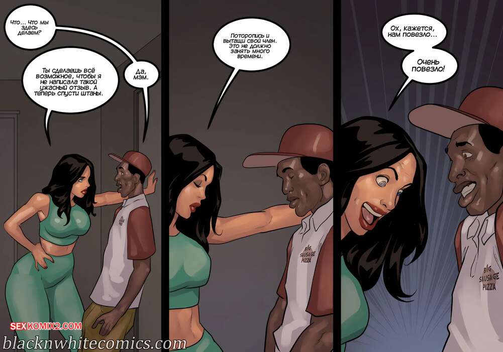 Порно комикс Игра в покер. Часть 4. The Poker Game. BlackNWhiteComics Темнокожий парень почтальон пришел домой к горячей милфе с особой посылкой. Красотка потащила парня в спальню и стала играться с его членом, пока ее муж наблюдал за ними.
