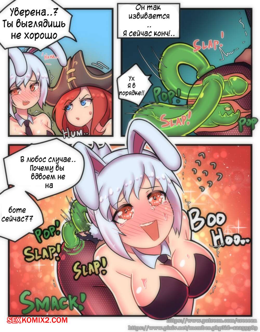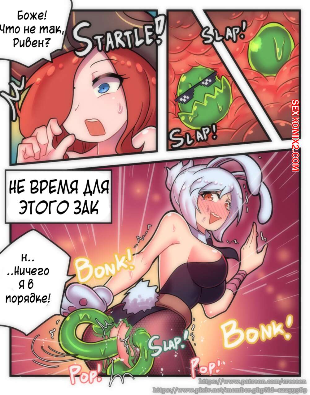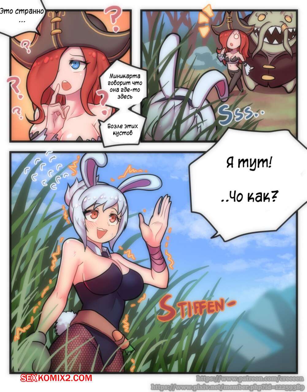 Порно комикс League of Legends. Желе из кролика. Creeeen. Аппетитная девушка соблазнила зеленого монстра и теперь он хочет трахнуть ее своим зеленым членом.