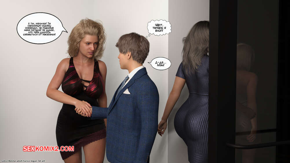 Порно комикс Домашнее задание. Часть 5. Homework. Lucius Logan Горячая милфа отправилась в комнату своего сына, чтобы разбудить его в колледж. Увидев стояк парня, красотка возбудилась и стала сосать хуй Калела, от чего он проснулся.