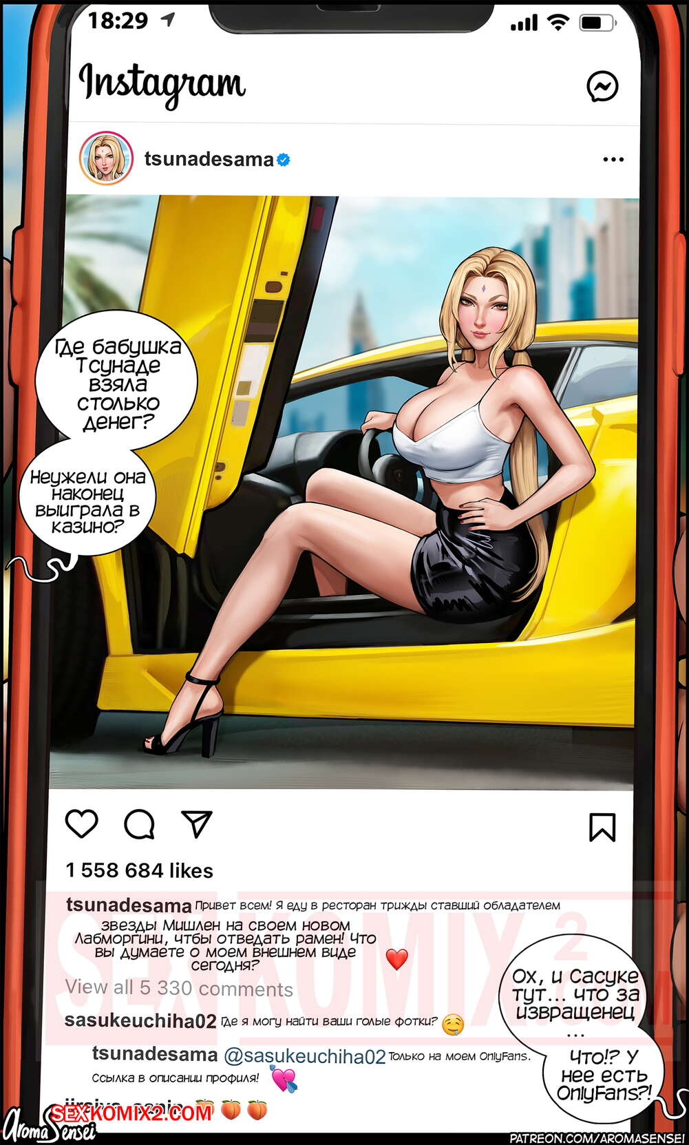 Порно комикс Наруто. Непристойные хроники Цунаде. AromaSensei. Наруто купил новый телефон и смотрит профиль Цунаде в Инстаграм. Он удивился, как она набрала так много подписчиков, но когда посмотрел фото, понял.