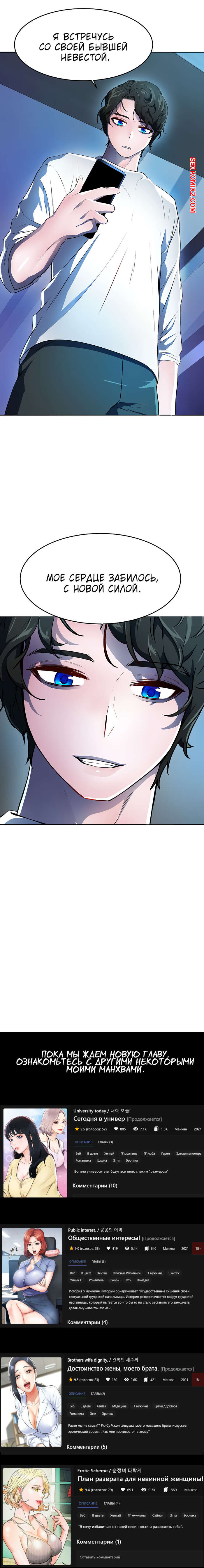 Leronson2022-07-18Шёл 1647590537 день, как у нас нет проды этой манхвы. У нас уже давно закончились годные проекты, про остальные комиксы филина я молчу. Нам нужно продолжение этого комикса. В последнее время так много всякого хлама. И ни одного глотка свежего, прекрасного, всезаполняющего сюжета, который тебя окутывает, и погружает тебя с головой в самую свою пучину. Так что я расстроен. И надеюсь на продолжение этой манги)