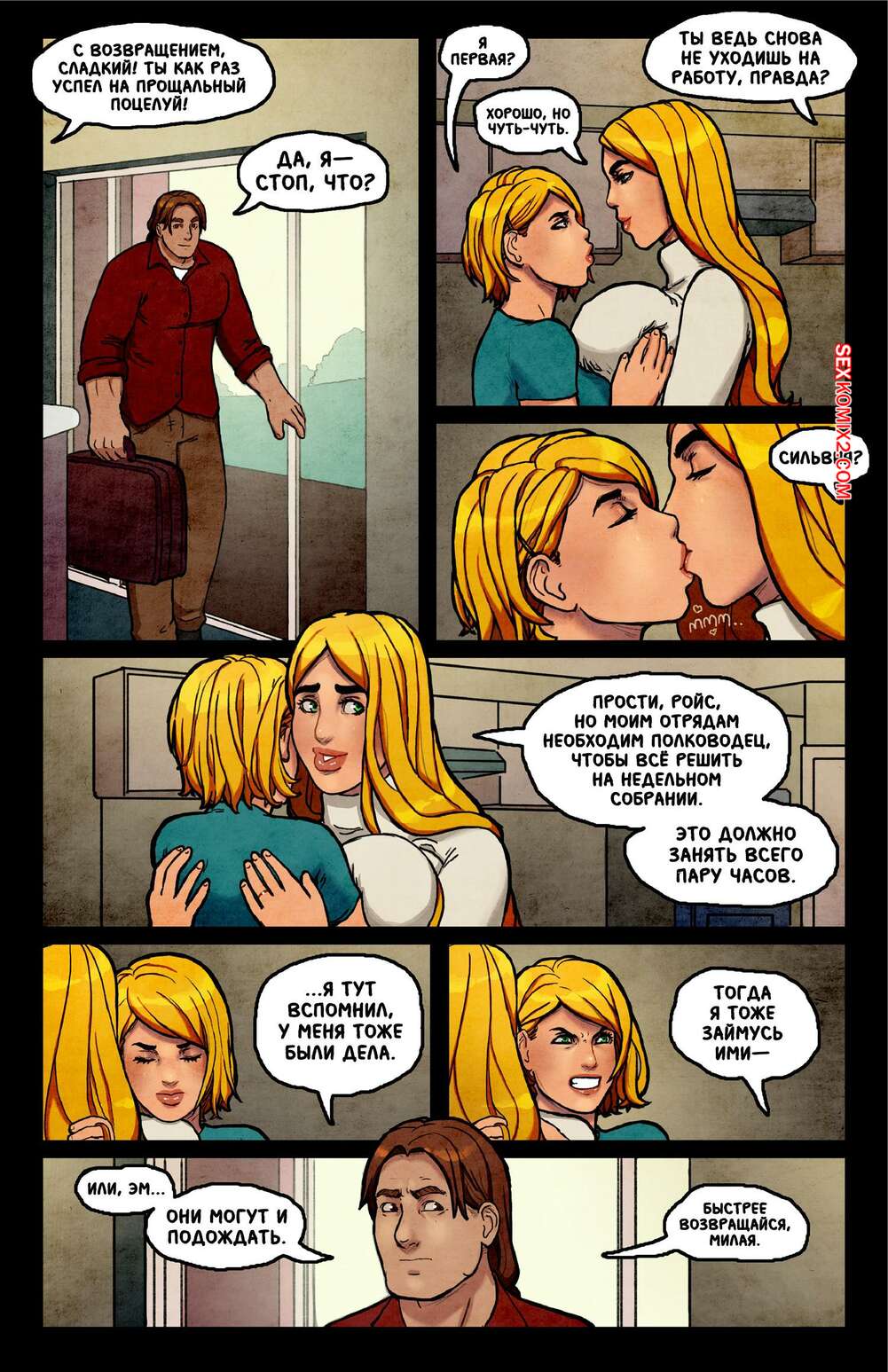Порно комикс СВИТЧ. Часть 6. SWITCH. Reinbach Парень был очень возбужден и решил повеселиться со своей горячей подругой. Он раздел блондиночку и дал ей отсосать свой большой хуй, после чего хорошенько ее выебал.