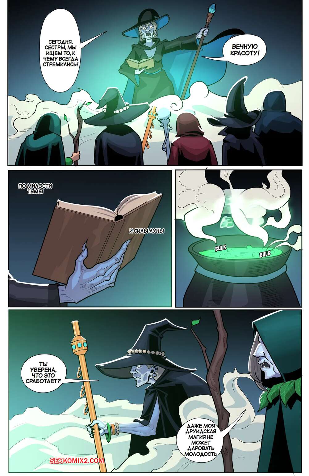 Порно комикс Шабаш желаний. Coven of Desire. BloomBeauty Горячие ведьмы сильно возбудились и решили повеселиться. Девушки разделись и стали ласкать друг дружку, после чего занялись страстной групповой лесбийской еблей.