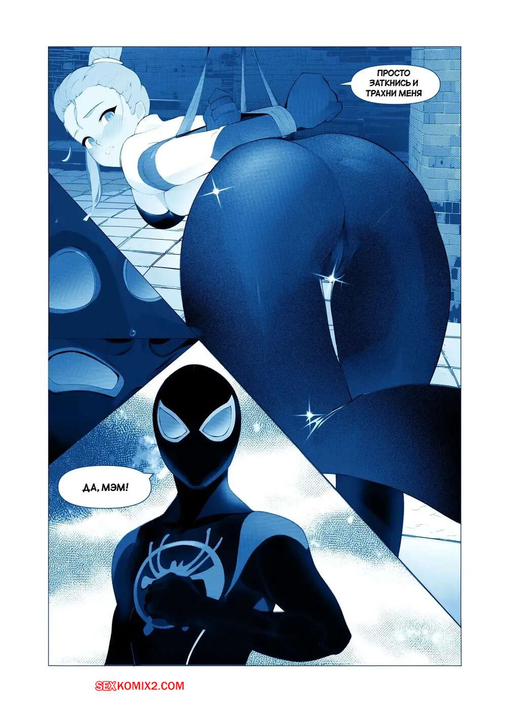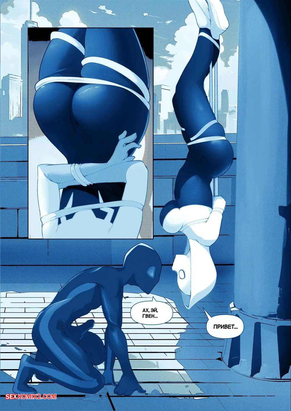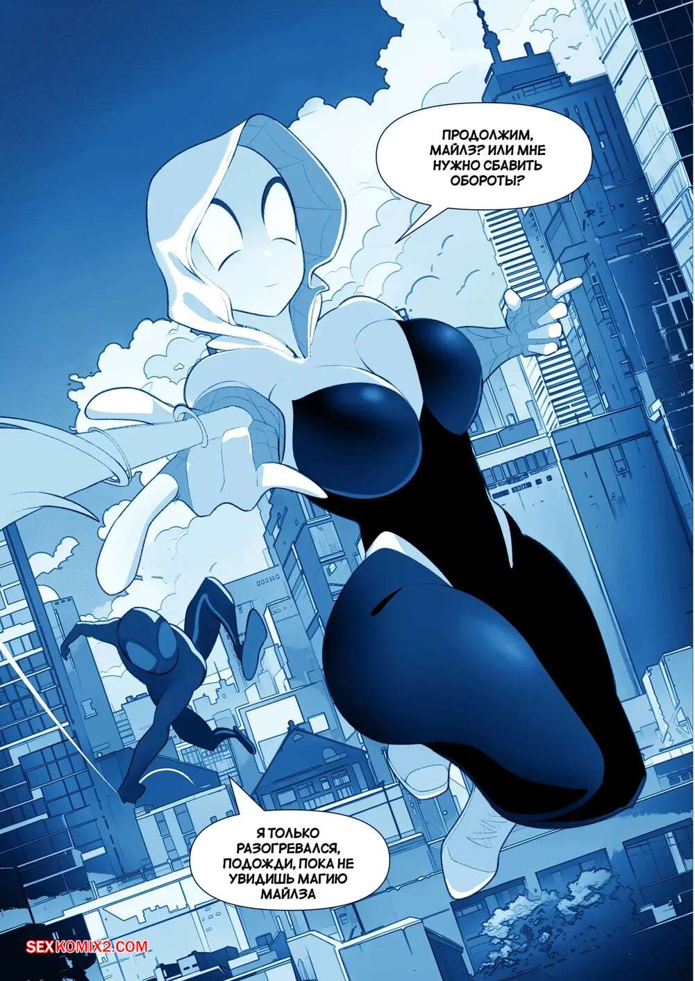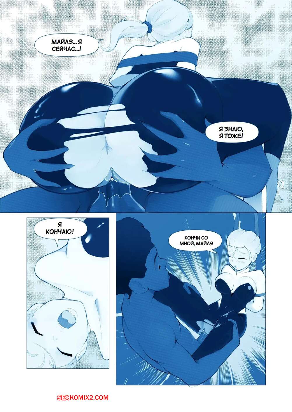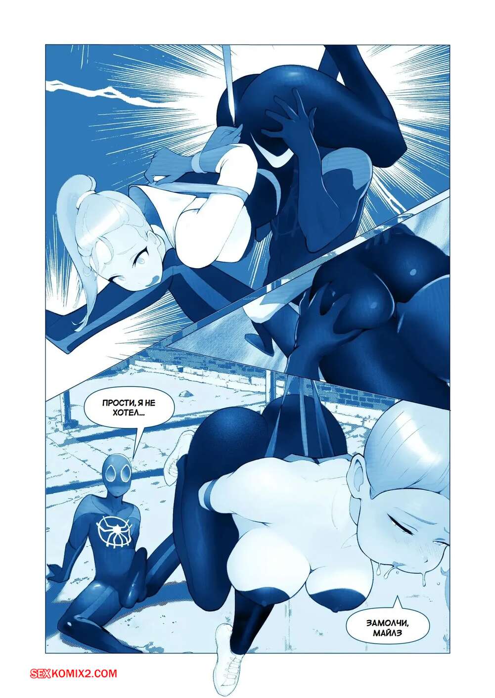 Порно комикс Marvel. Запутанная страсть. Tangled Passions. Bojerry Гвен и Майлз были очень возбуждены и решили повеселиться. Они разделись и стали ласкать друг друга, после чего девушка раздвинула ножки и дала парню себя выебать.
