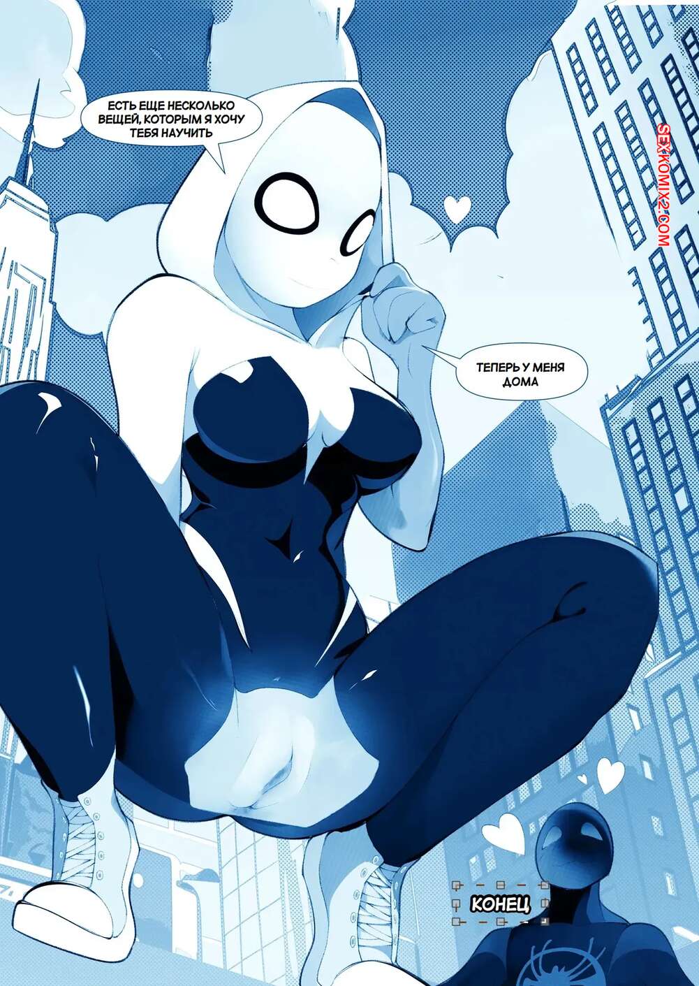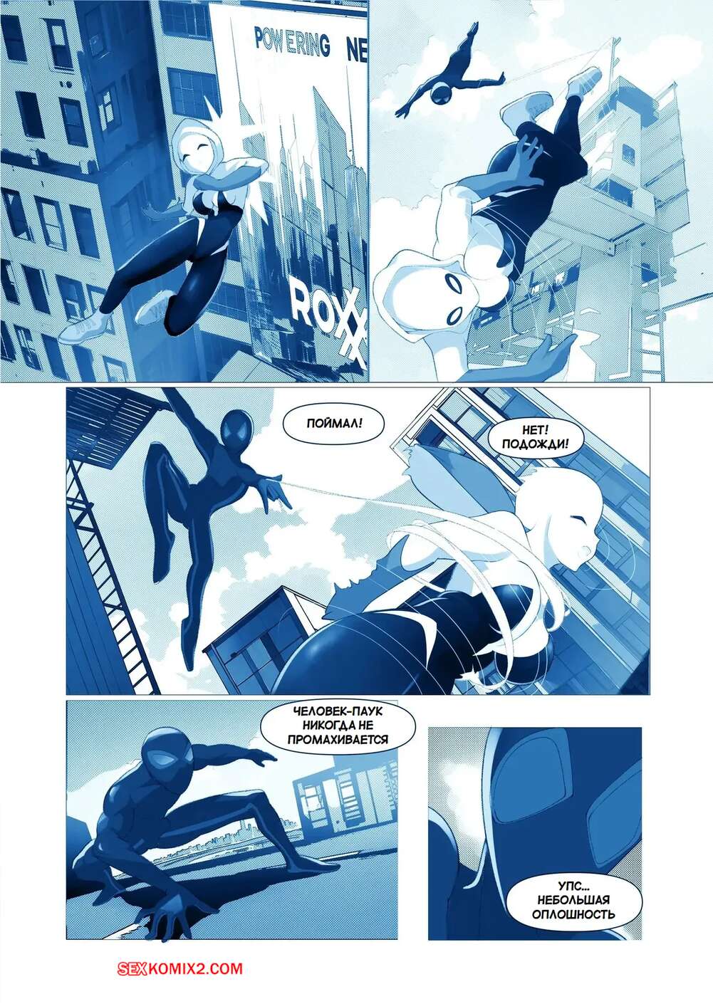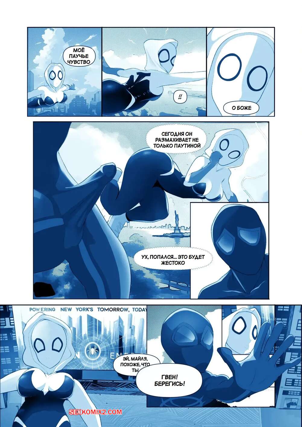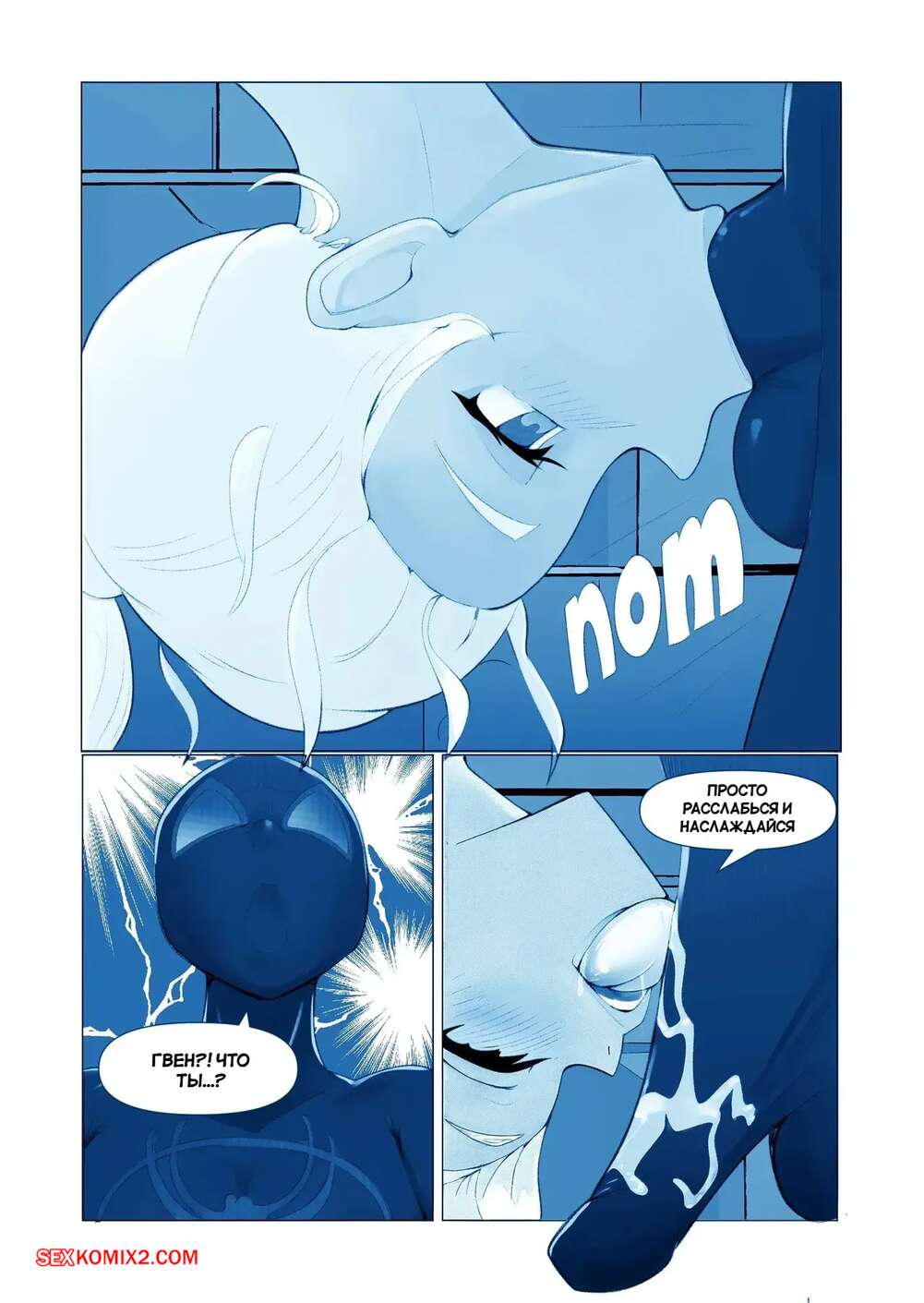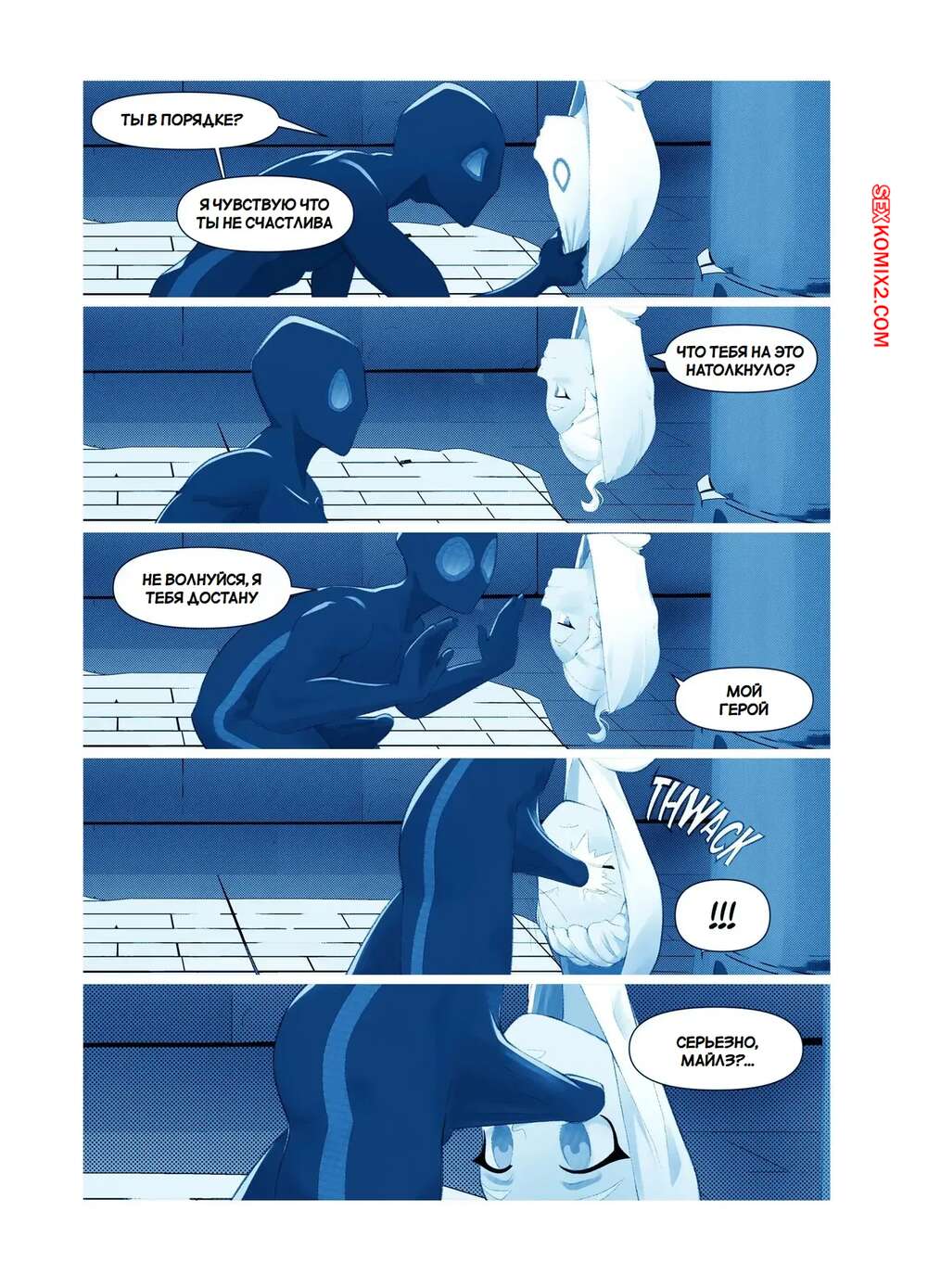 Порно комикс Marvel. Запутанная страсть. Tangled Passions. Bojerry Гвен и Майлз были очень возбуждены и решили повеселиться. Они разделись и стали ласкать друг друга, после чего девушка раздвинула ножки и дала парню себя выебать.
