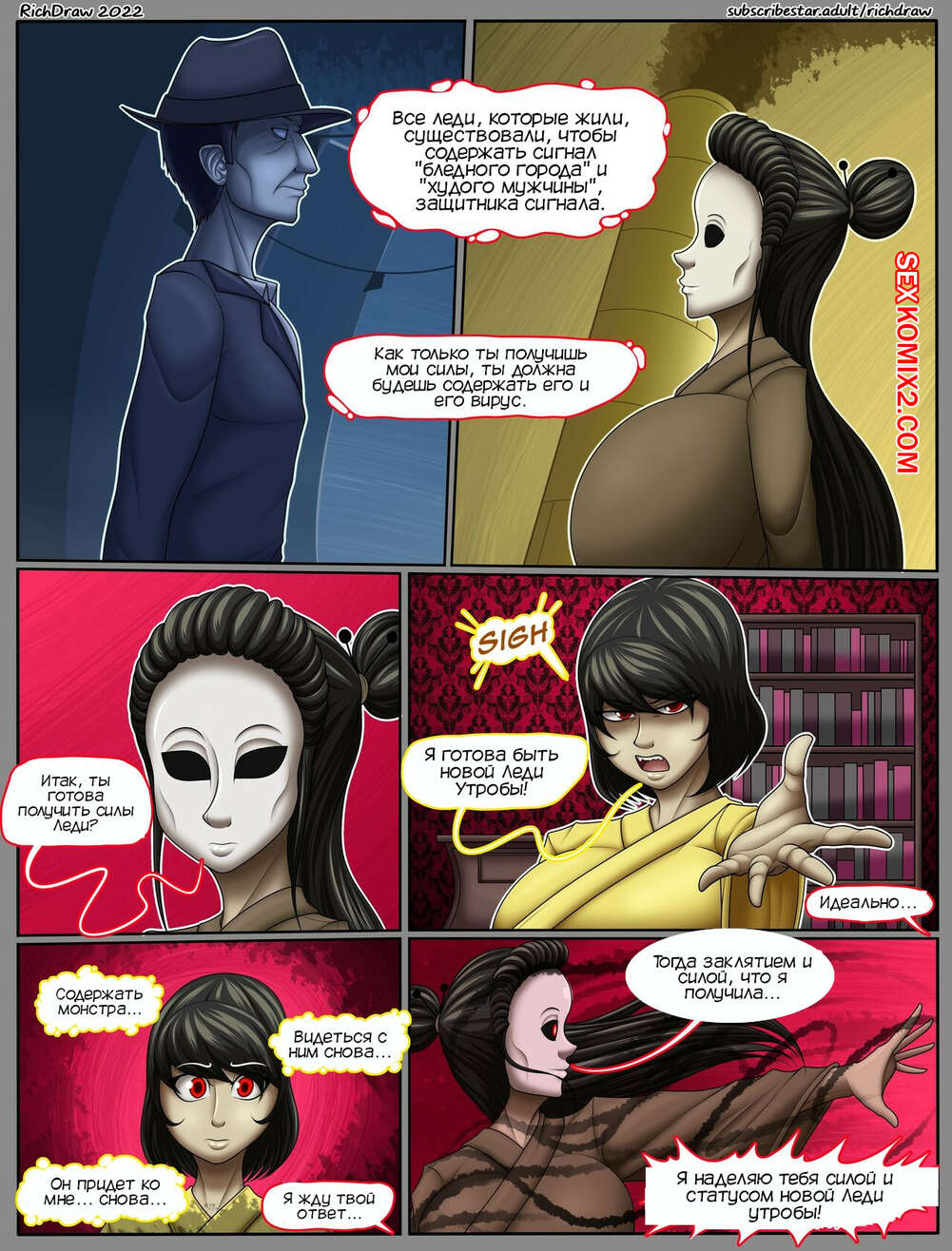 Порно комикс Мой непристойный кошмар. RichDraw. Девушка в желтом костюме очень проголодалась по пенису, и поэтому, встретив странное существо с огромным членом, она не сдержалась и тогда просто проглотила весь его член своим ртом, а потом засунула в пизду, чтобы отличного траха.