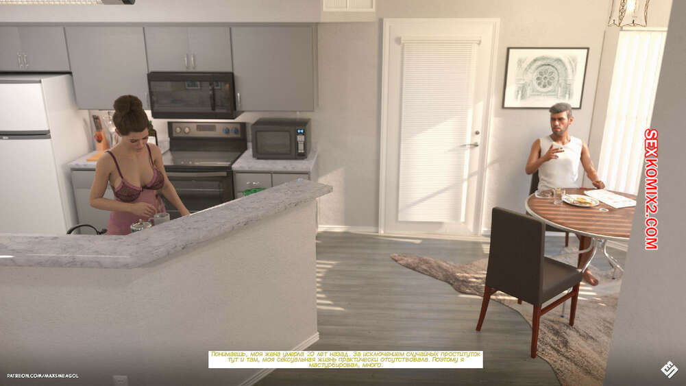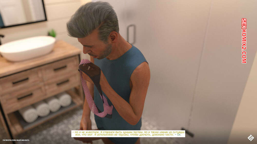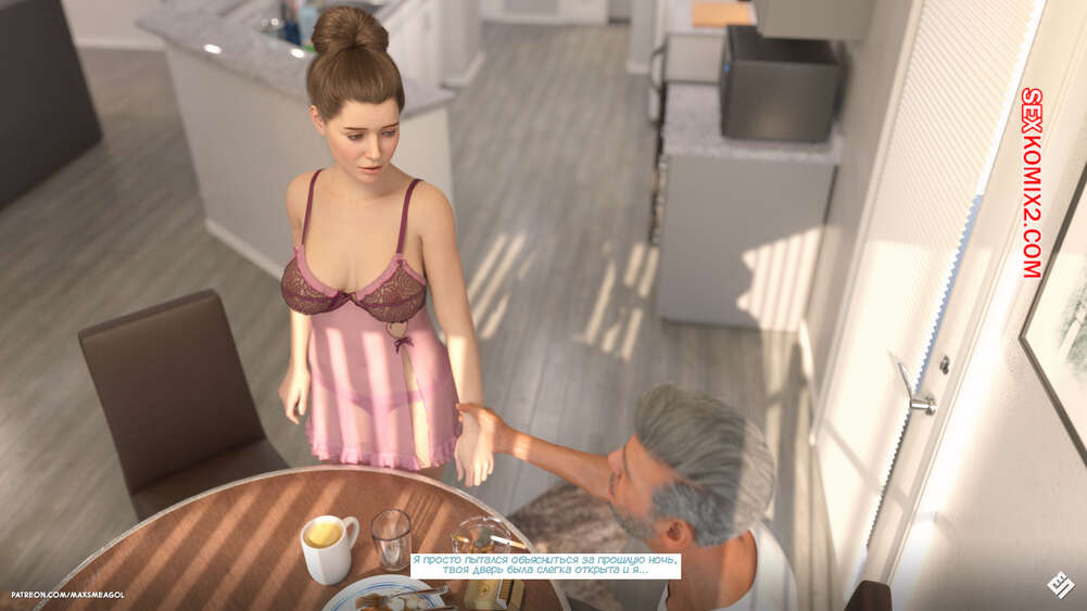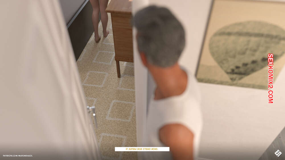 Порно комикс Переулок. Часть 2. Alley. MaxSmeagol Горячая брюнетка приютила у себя старика и он рассказывает ей о своей прошлой жизни. Он жил у своего сына в доме с его женой, пока мужчина отправился в командировку. Старик чувствовал возбуждение изза невестки, поэтому подбирал ее трусики и дрочил. Вскоре она его спалила.