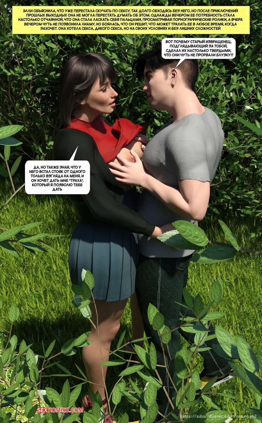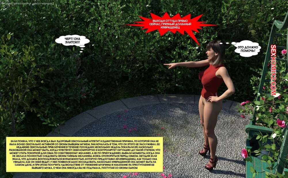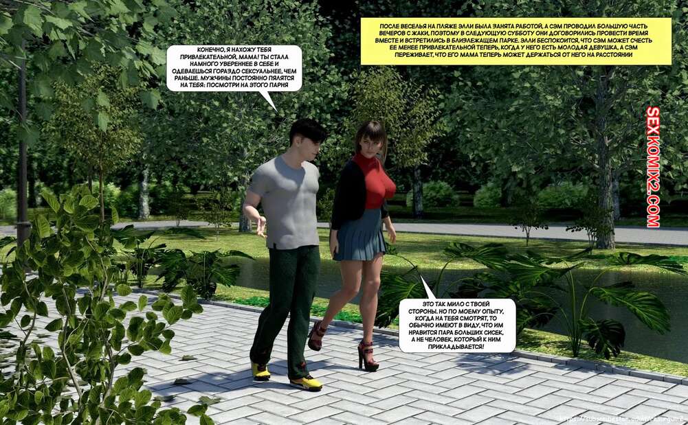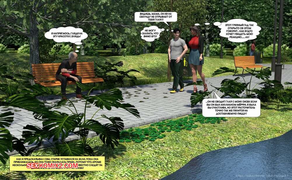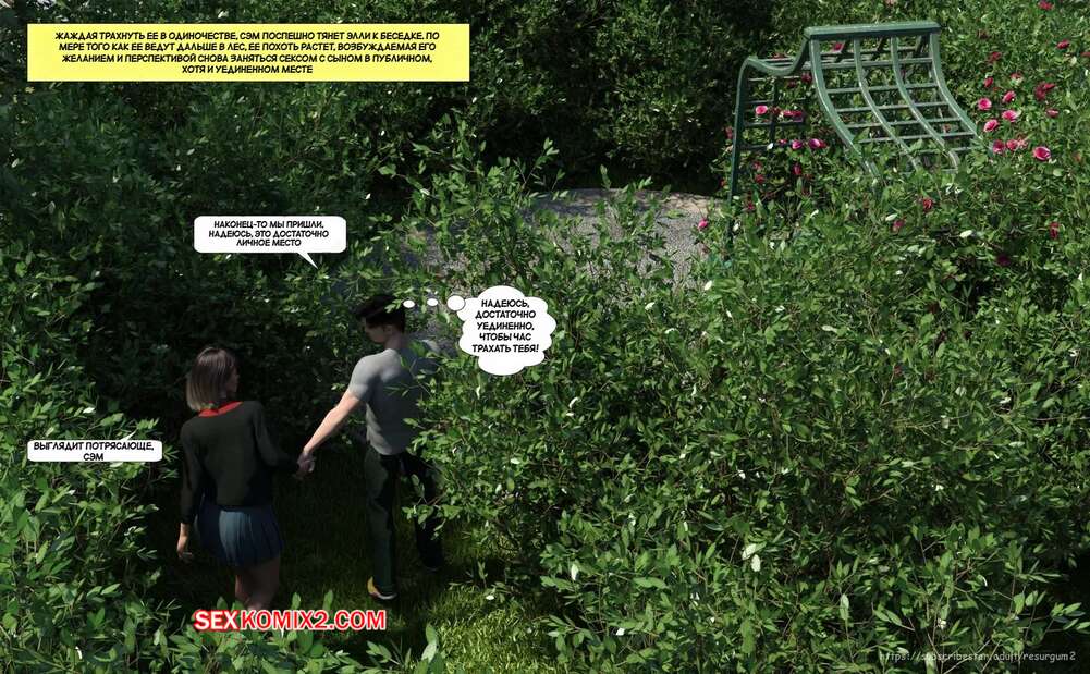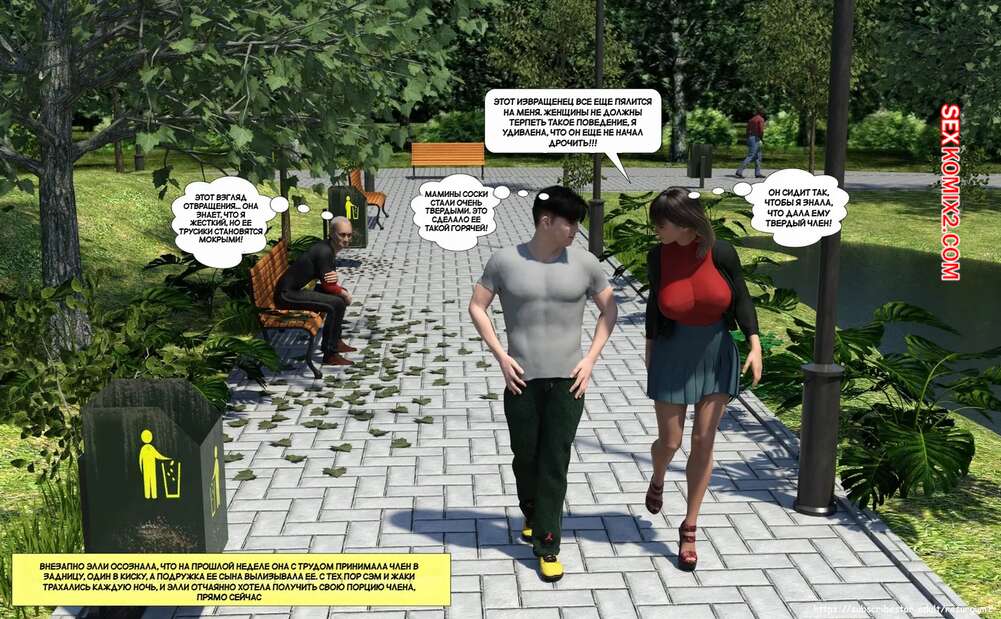 Порно комикс Путешествие Элли в разврат. Часть 4. Ellie A Journey into Depravity. Resurgum2 Милфа с сыном отправились в парк на прогулку, где решили повеселиться. Красотка возбудила парня шикарным телом, после чего дала ему выебать свою задницу и кончить в нее.