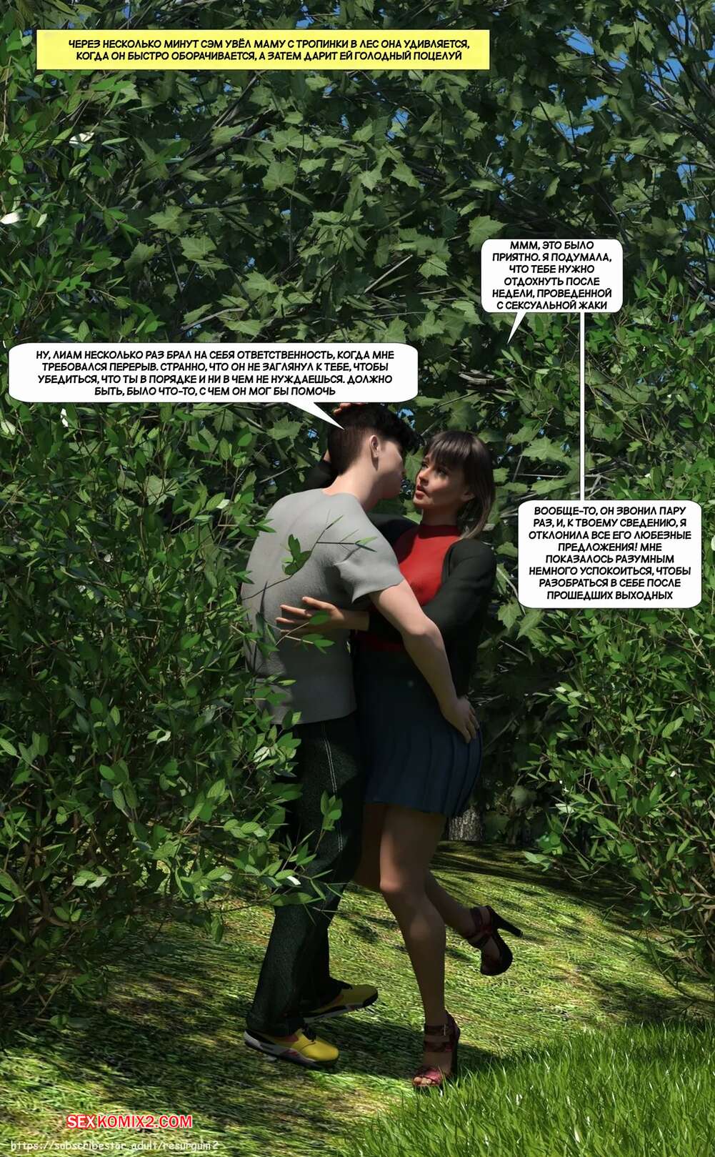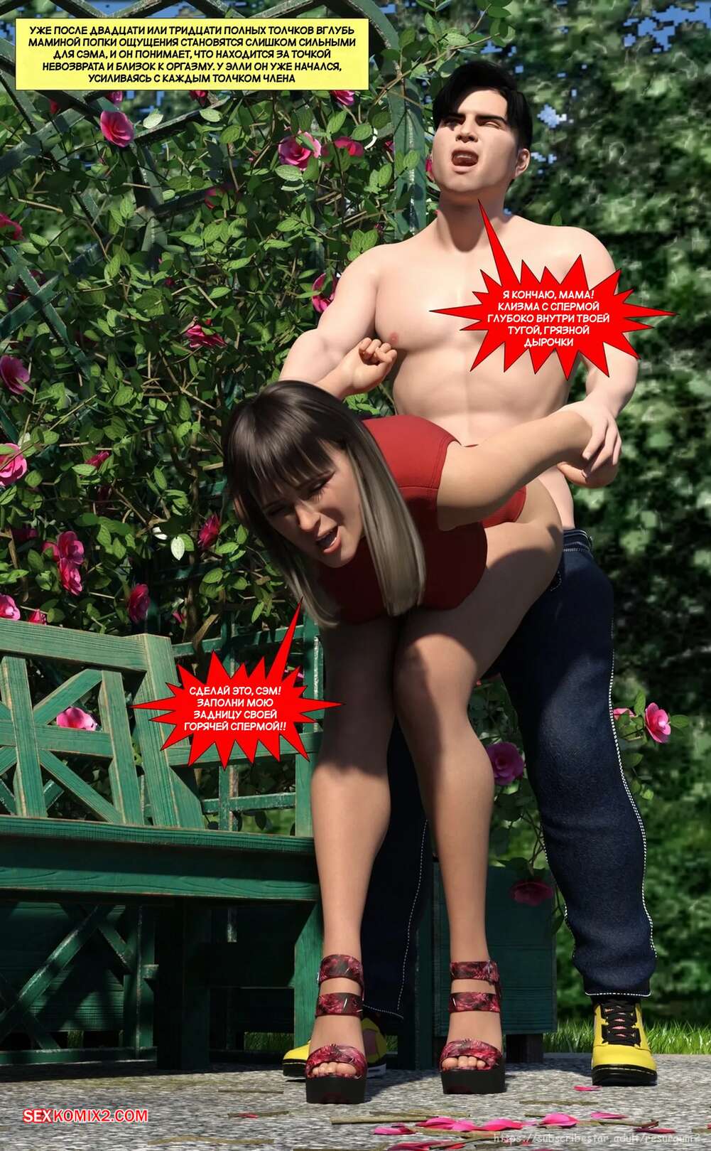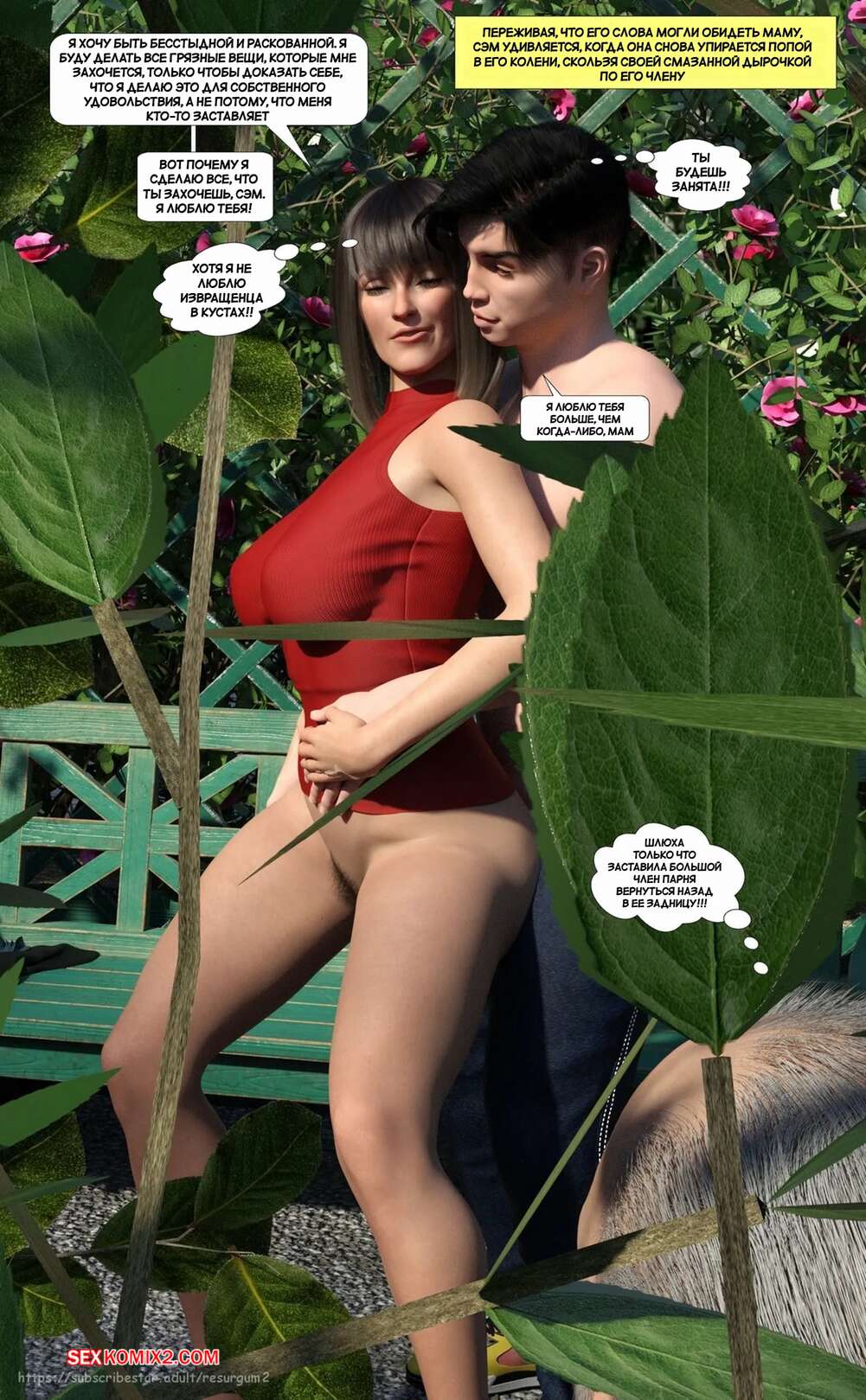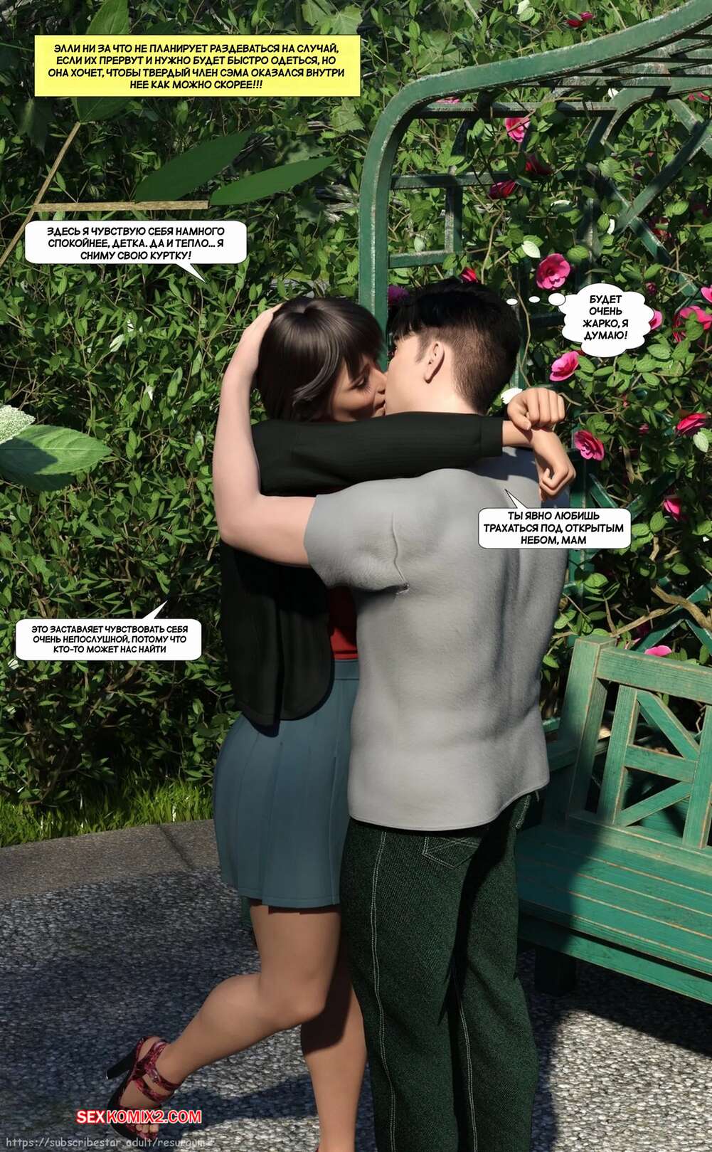 Порно комикс Путешествие Элли в разврат. Часть 4. Ellie A Journey into Depravity. Resurgum2 Милфа с сыном отправились в парк на прогулку, где решили повеселиться. Красотка возбудила парня шикарным телом, после чего дала ему выебать свою задницу и кончить в нее.