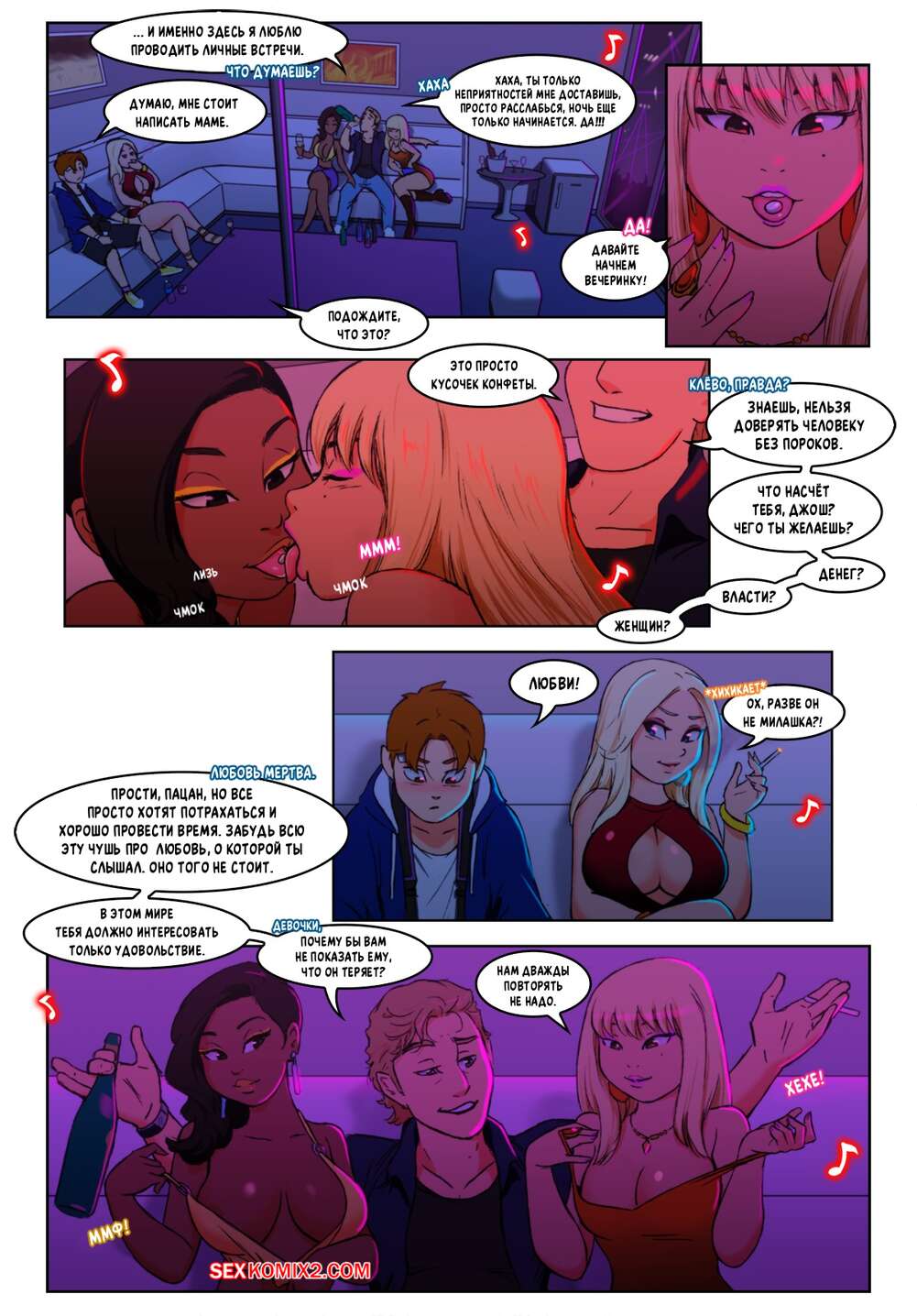 Порно комикс Гарем Студия. Часть 8. Harem Studio. BloodLust Парень отправился в ночной клуб, где горячие красотки решили его порадовать. Они стали танцеваться для юного парнишки, после чего дали ему себя хорошенько выебать.