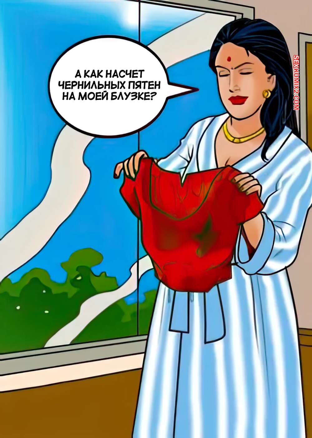 Порно комикс Веламма. Часть 48. Velamma. Velamma У Веламмы возникли проблемы с сантехникой в ванне и она вызвала к себе работника. Красотка стала соблазнять парня шикарным телом, после чего раздвинула ножки и дала ему себя выебать.