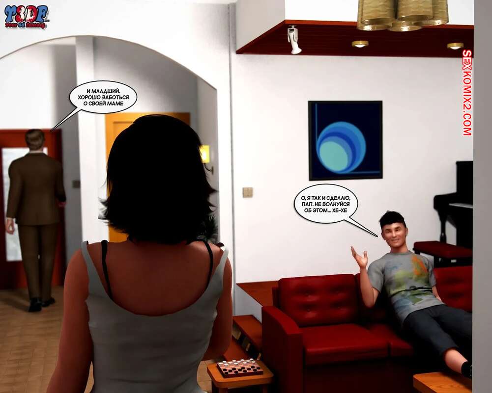 Порно комикс Сломлена. Часть 3. Busted. Y3DF Парень наблюдал через скрытую камеру, как его родители трахаются. Когда они уснули, парнишка отправился в родительскую комнату и стал раздевать маму, желая ее трахнуть.