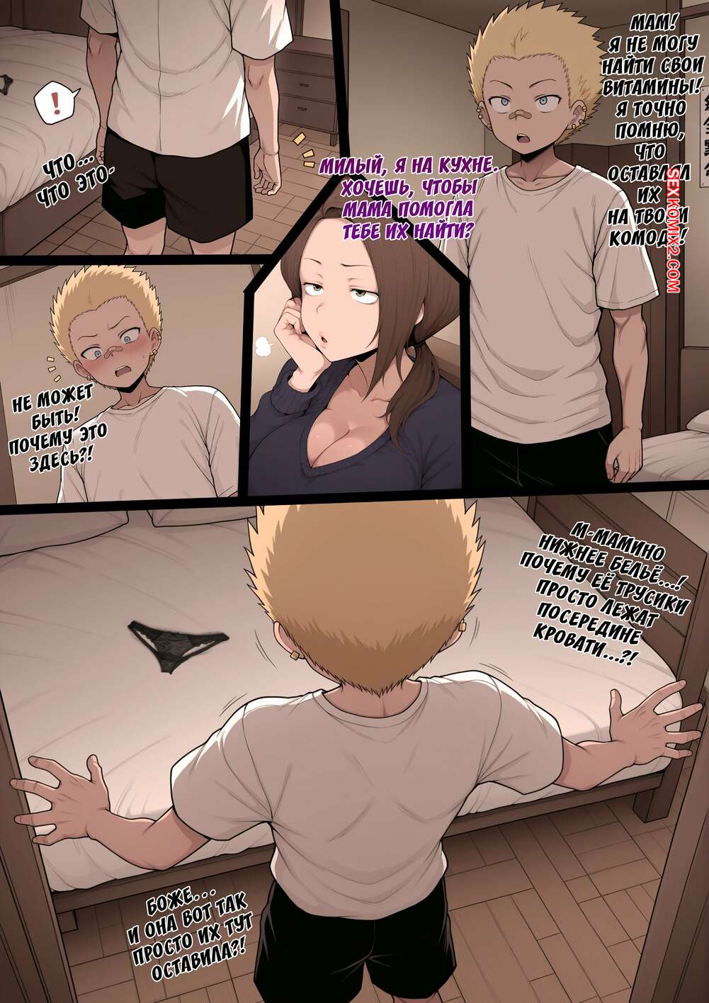 Порно комикс Чернокожий студент по обмену. Мамины трусики. Kokujin no Tenkousei NTR. Terasu Mc Горячая милфа была очень возбуждена и решила повеселиться с темнокожим парнем. Она встала на колени и отсосала его большой хуй, после чего дала выебать свою пизденку.