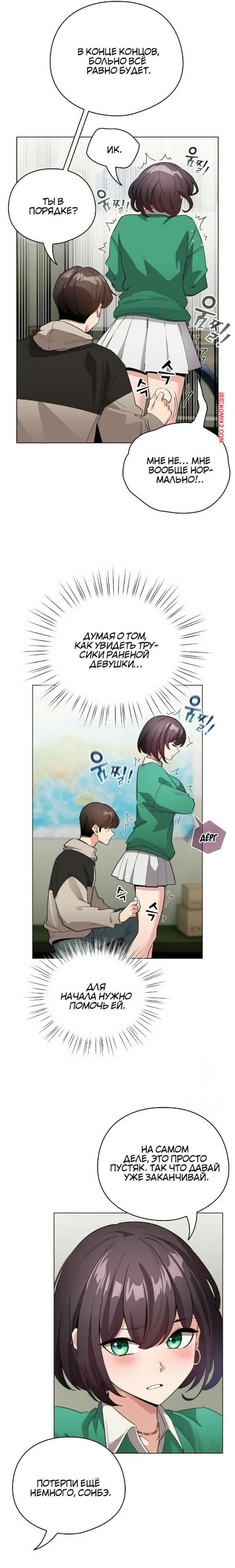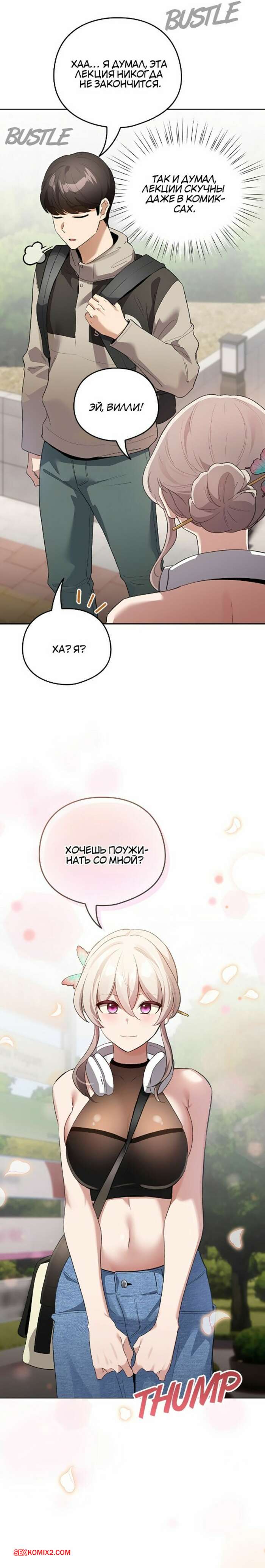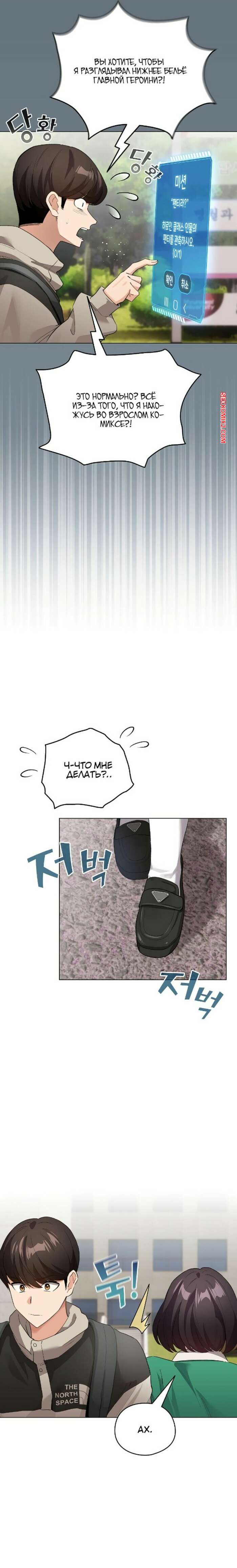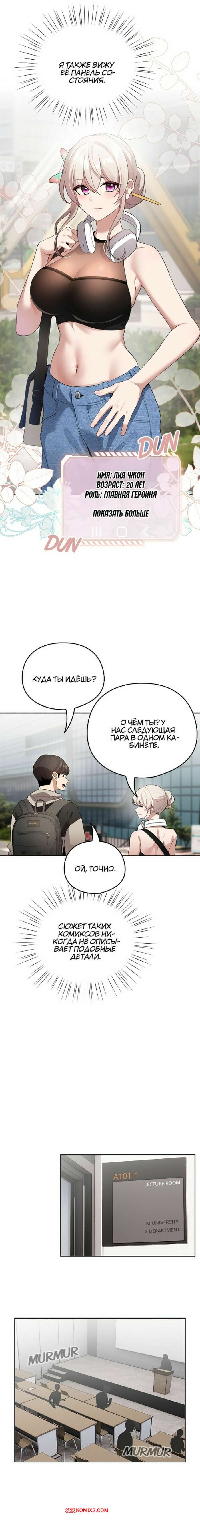 Порно комикс Стал второстепенным персонажем в хентай манхве. Часть 1 и 2 и 3 Парень стал засматриваться на горячую брюнетку и стал думать о том, чтобы снять трусики девушки. Красотка заметила намерения парня и решила показать ему свои трусики.