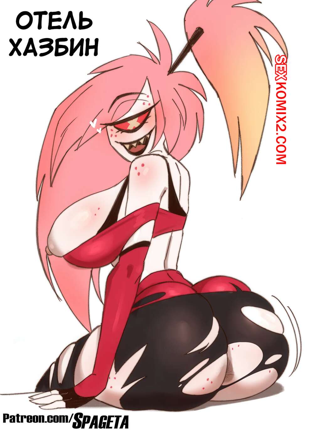 Порно комикс Отель Хазбин. Hazbin Hotel. Spageta. Горячая блондинка с шикарным телом очень возбуждена и хочет трахаться. Она раздевается и соблазняет своих дружков, после чего дает им себя хорошенько выебать.