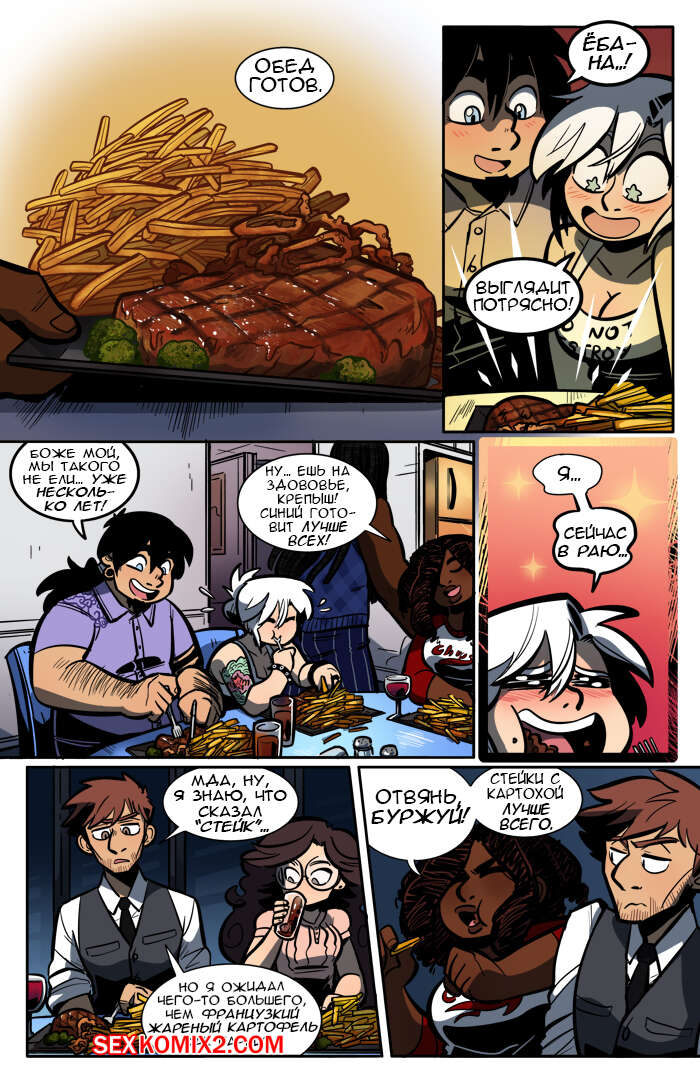 Порно комикс Рок хуй. The Rock Cocks. Часть 4. Встреча с Редд Новый друг ребят повез их к своей первой клиентке, которая стала невероятно богата. После ужина, наши герои отправились в комнату для гостей, где, увидев кровать, их счастью просто не было предела. У них так давно не было секса на кровати, что они решили не терять возможности и раздевшись, сразу стали ебаться.