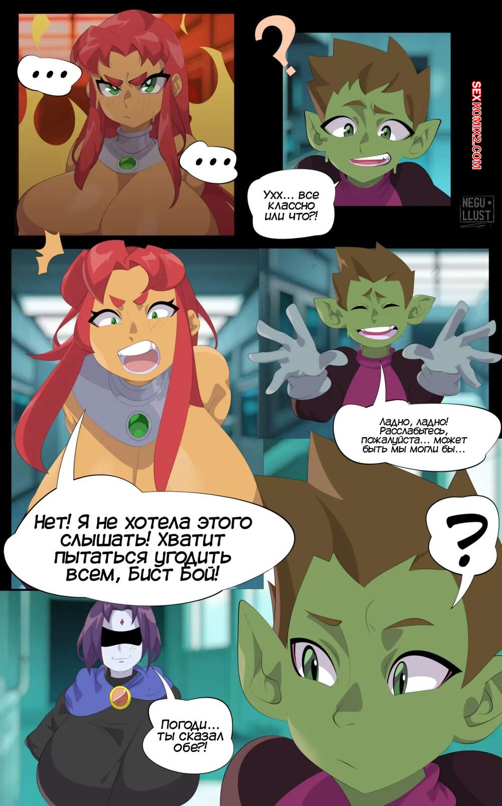 Порно комикс Teen Titans. Подростковые титаны. Teen Titans Comic. Negullust Рейвен и Старфайр устроили спор, чтобы выяснить, что нравится парням больше, большие сиськи Стар или огромная задница Рейвен. Девушка отправились к Бист бою, чтобы он высказал свое мнение.